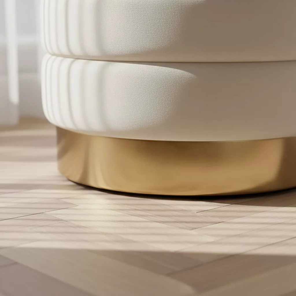 • Modern glamour stílus: Arany színű fém talp és krémszínű kárpit kombinációja kifinomult eleganciát kölcsönöz