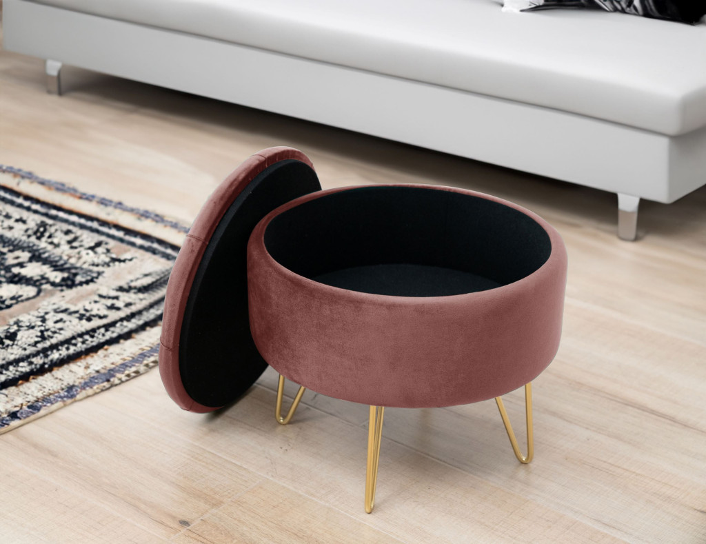 AKORD Caro Tárolós Puff Rózsaszín Velúr Arany Lábakkal