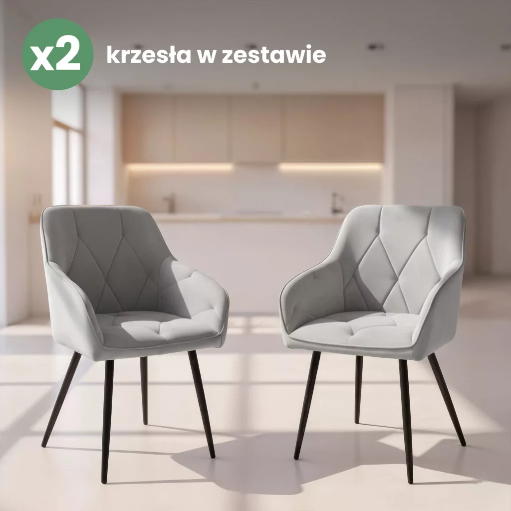 A DIAMANTE kárpitozott szék kiváló minőségű welúr kárpittal és dekoratív steppelt mintával ötvözi az eleganciát a funkcionalitással. A nagy sűrűségű habszivacs töltet kivételes ülési kényelmet biztosít, míg a fekete fém lábak stabilitást és modern megjelenést kölcsönöznek a széknek. Ez a szék tökéletesen illeszkedik mind a kortárs, mind a klasszikus berendezési stílusokhoz.