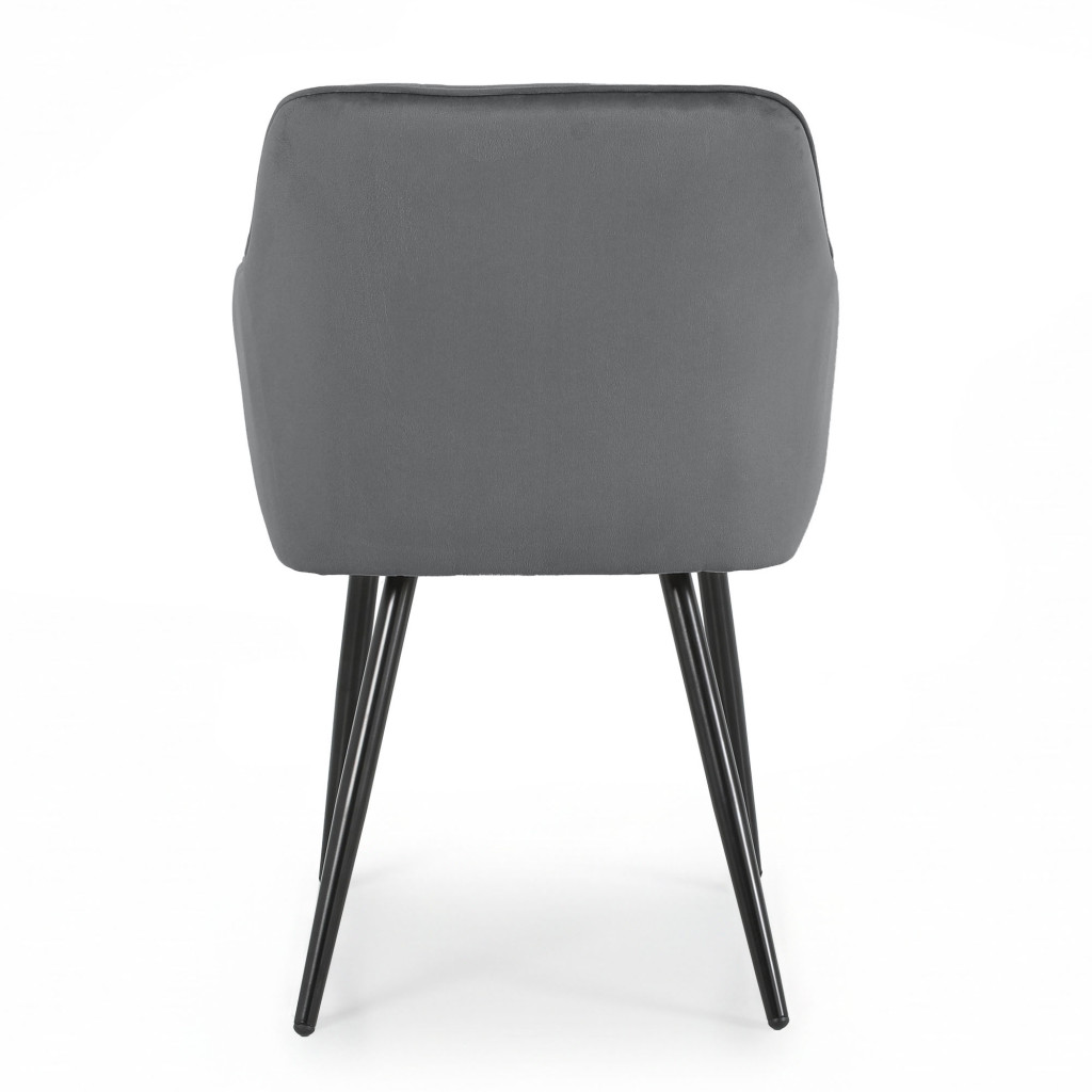 Elegáns welúr kárpitozott szék dekoratív steppelt mintával és fekete fém lábakkal, amely stílusos kényelmet biztosít az étkezőben vagy a nappaliban.