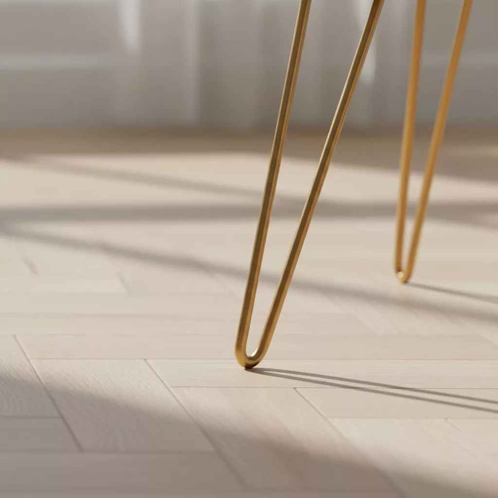 • Stabil acél konstrukció: Az arany színű fém lábak 100 kg teherbírást biztosítanak, miközben modern, légies megjelenést kölcsönöznek a búторnak
