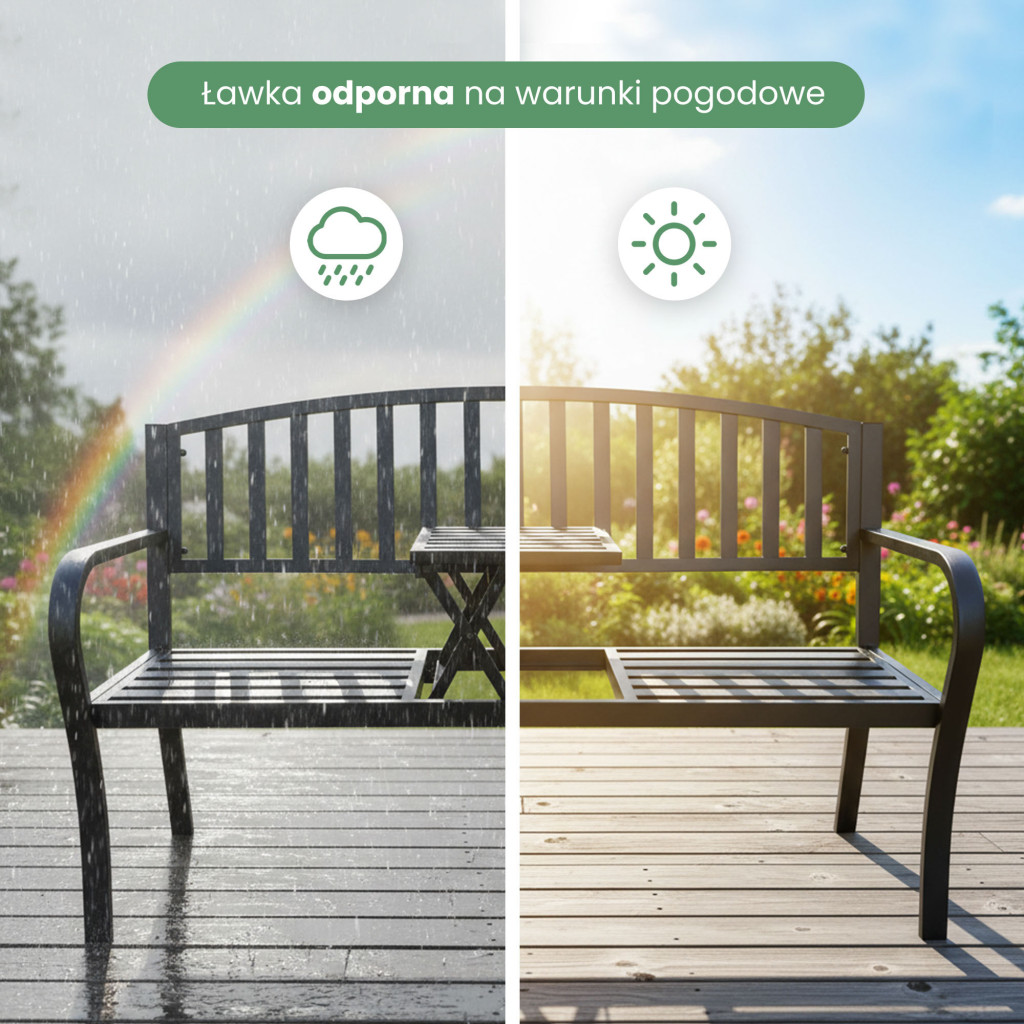 • Időjárásálló fém konstrukció – tartós anyag, amely ellenáll az esőnek, napfénynek és hőmérséklet-ingadozásoknak