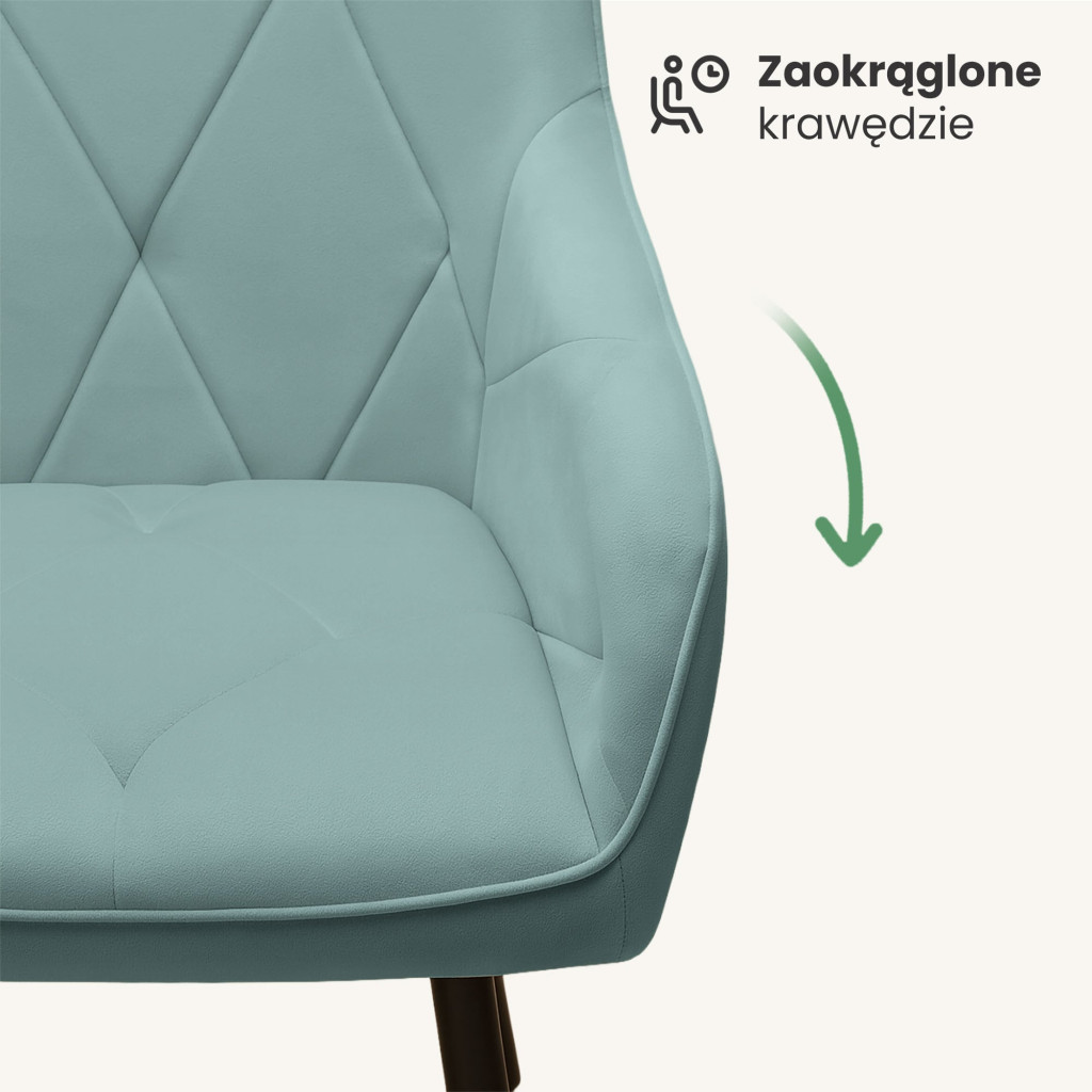 A Diamante kárpitozott szék kiváló minőségű welúr anyaggal és elegáns steppelt díszítéssel rendelkezik, amely azonnal feldobja bármely helyiség hangulatát. A fekete fém lábak modern, letisztult megjelenést kölcsönöznek, miközben kiváló stabilitást biztosítanak. A nagy sűrűségű habszivacs töltet hosszú távú kényelmet garantál, így akár hosszabb étkezések vagy beszélgetések során is kellemes marad a használat.