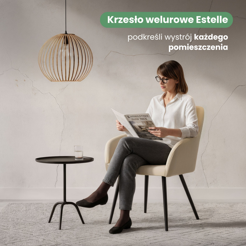 Az ESTELLE bársony szék a minimalista design és a praktikus funkcionalitás tökéletes ötvözete. A puha tapintású, prémium minőségű bársony kárpit nemcsak vizuálisan vonzó, hanem rendkívül kényelmes is, így hosszú étkezések és beszélgetések során is maximális komfortot nyújt. A szék elegáns bézs színe univerzális, könnyen illeszkedik mind a modern, mind a klasszikus berendezésekhez.