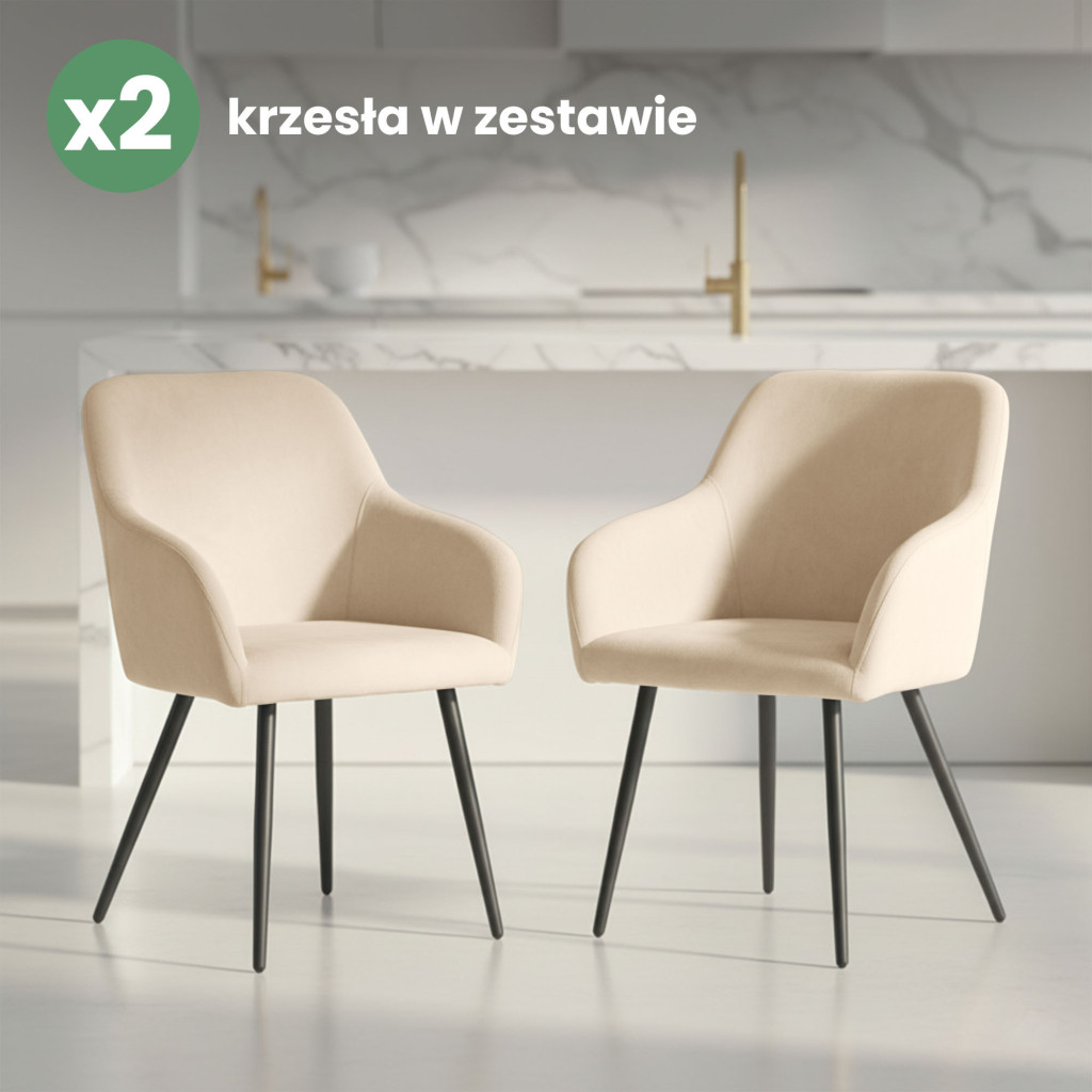 AKORD ESTELLE Kárpitozott Szék Bársony Bézs Fekete Lábakkal 2 db