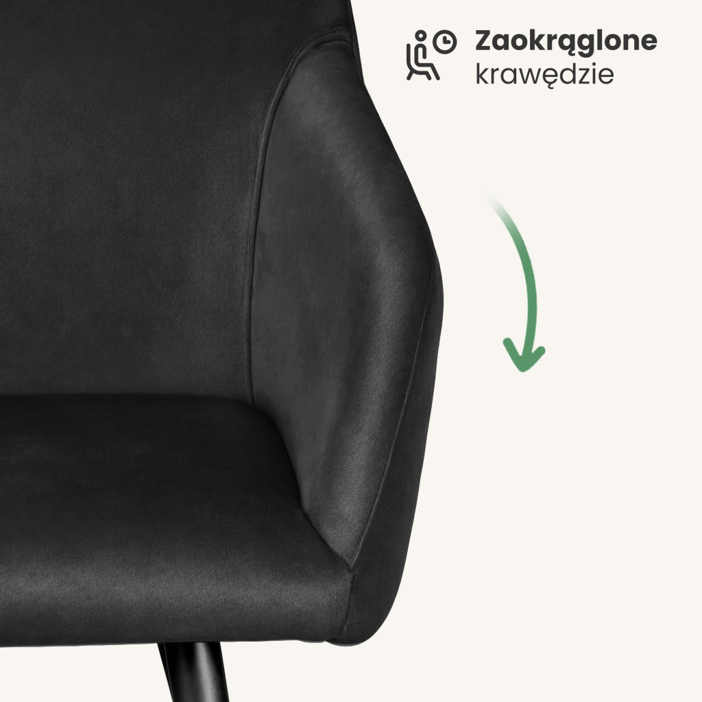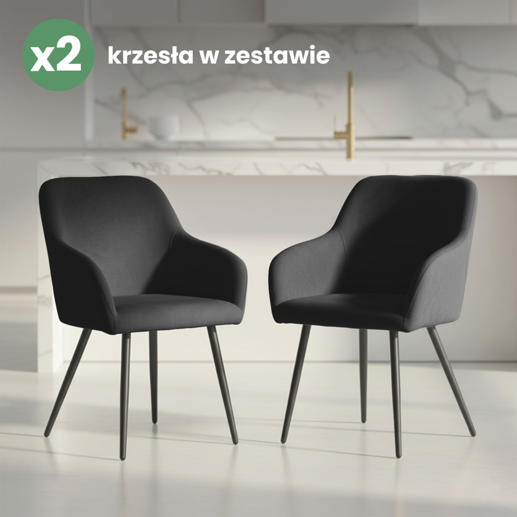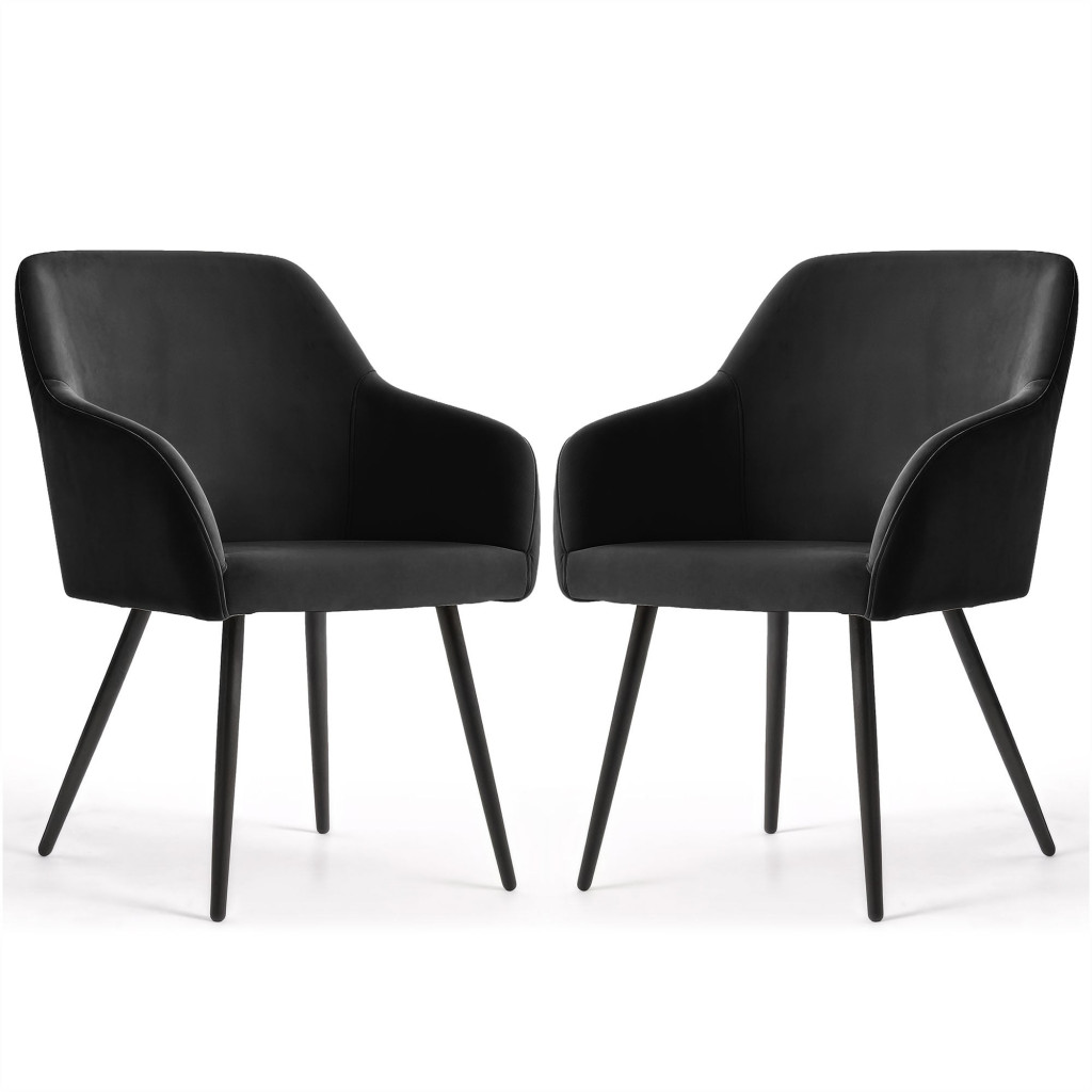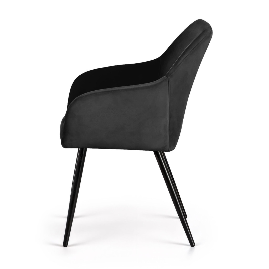 Elegáns, fekete welúr kárpitozott szék minimalista dizájnnal és fekete fém lábakkal. Tökéletes választás modern és klasszikus enteriőrökhöz egyaránt, 2 darabos kiszerelésben.