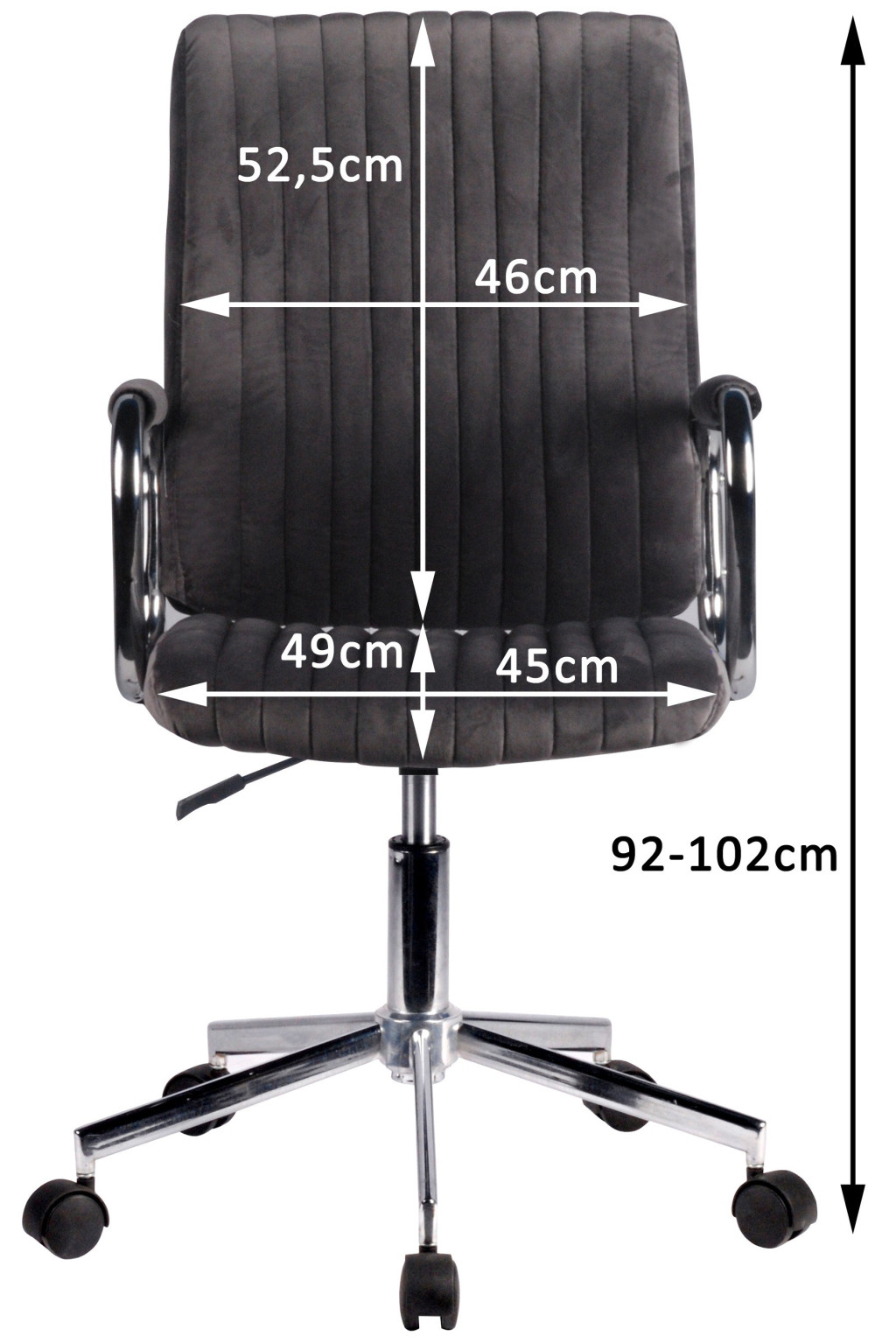 A szék ergonomikus kialakítása, állítható magassága és stabil görgős talpa maximális mozgásszabadságot és kényelmet nyújt. A karfák és a párnázott ülőfelület további komfortot biztosítanak a mindennapos használat során.