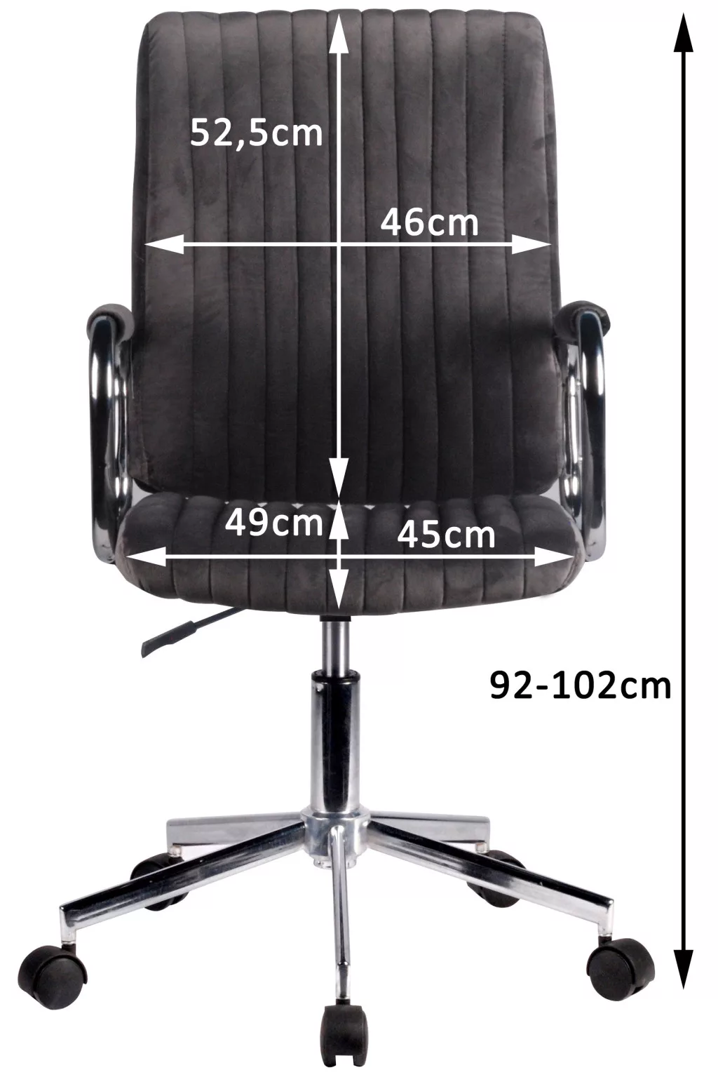A szék ergonomikus kialakítása és állítható magassága lehetővé teszi a tökéletes munkapozíció beállítását. A prémium minőségű velúr borítás kellemes tapintású és tartós, míg a stabil görgős talp könnyű mozgást biztosít az irodában.