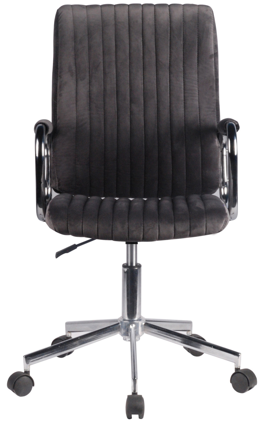Az AKORD FD-24 forgószék a modern irodai terek ideális bútordarabja. A függőleges bordázott kialakítású szürke welur kárpitozás nem csak esztétikus megjelenést kölcsönöz, de kellemes üléskomfortot is biztosít. A krómozott fém váz és karfa elegáns megjelenést és tartósságot garantál.