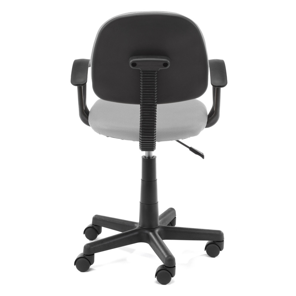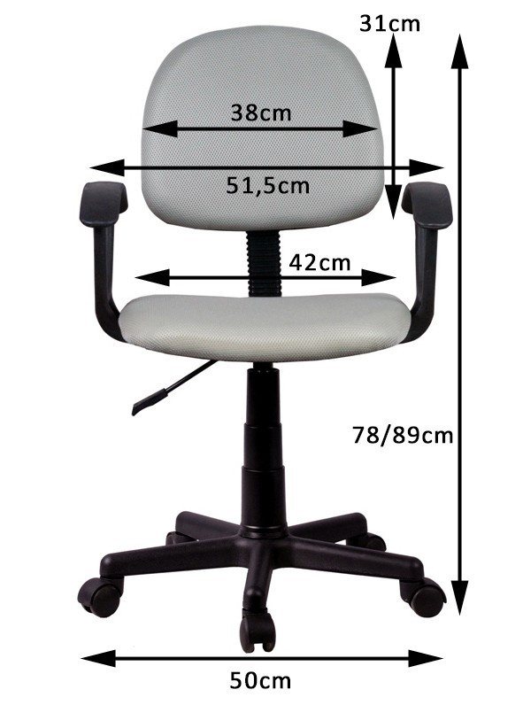 A szék magassága könnyen állítható, stabil műanyag lábszerkezete és görgői könnyű mozgást tesznek lehetővé. A fekete váz és szürke kárpitozás időtlen megjelenést kölcsönöz, míg a kompakt méretezés kifejezetten a gyermekek igényeihez igazodik.