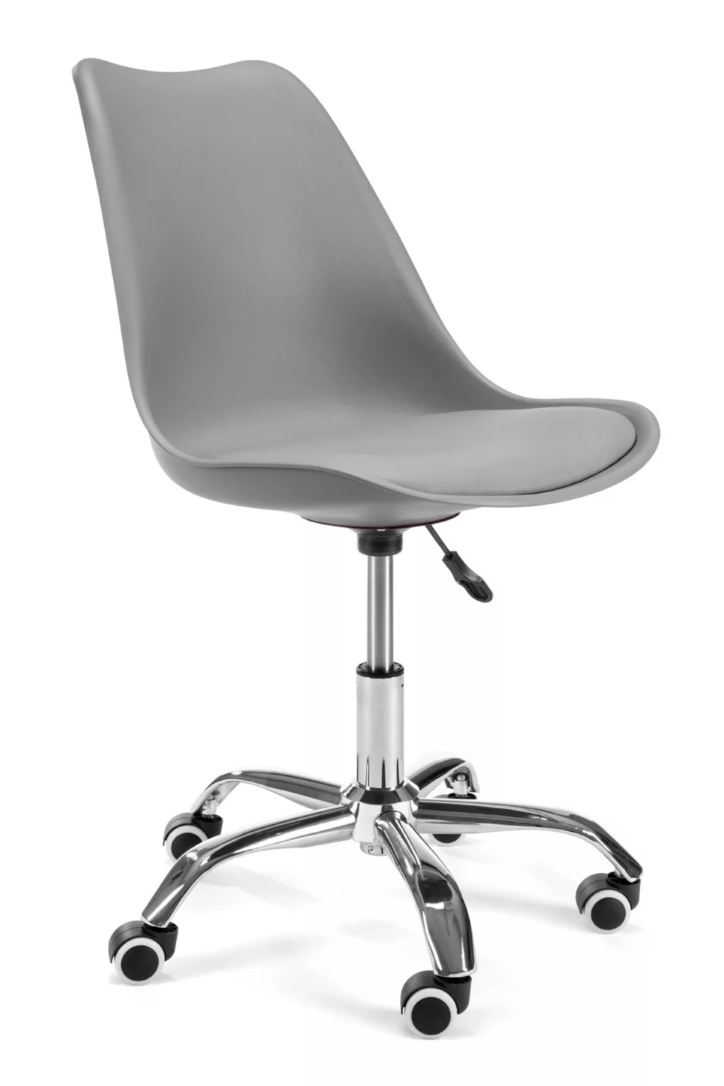 Modern kialakítású, állítható magasságú forgószék polipropilén és műbőr borítással, krómozott acél alappal, ideális otthoni vagy irodai használatra.