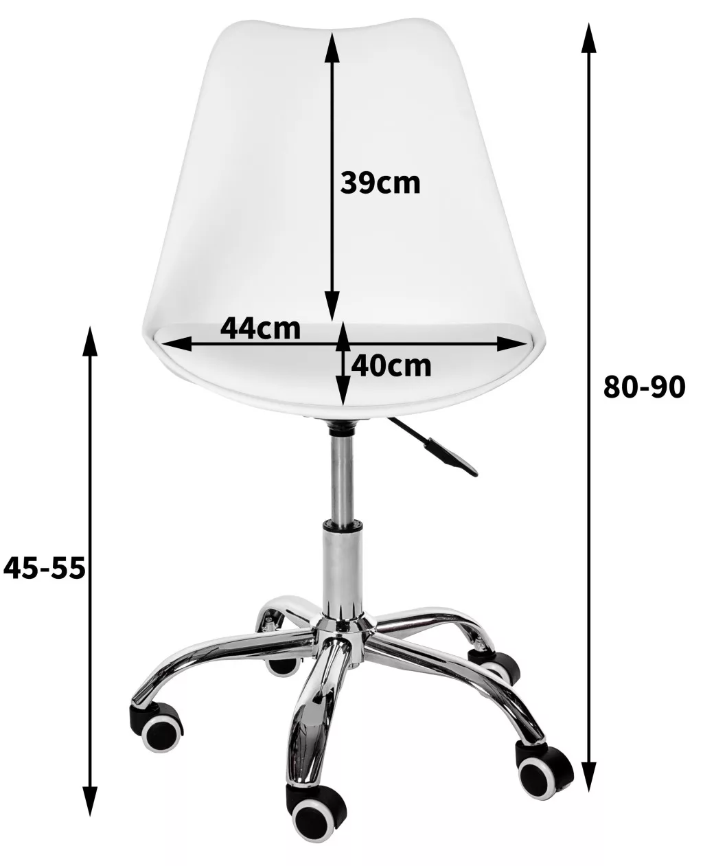A krómozott acél alap és a csendes görgők stabil alapot nyújtanak, miközben védik a padlófelületet. A szék 125 kg-os teherbírása és 45-55 cm közötti állítható magassága széles felhasználói kör számára teszi ideális választássá.