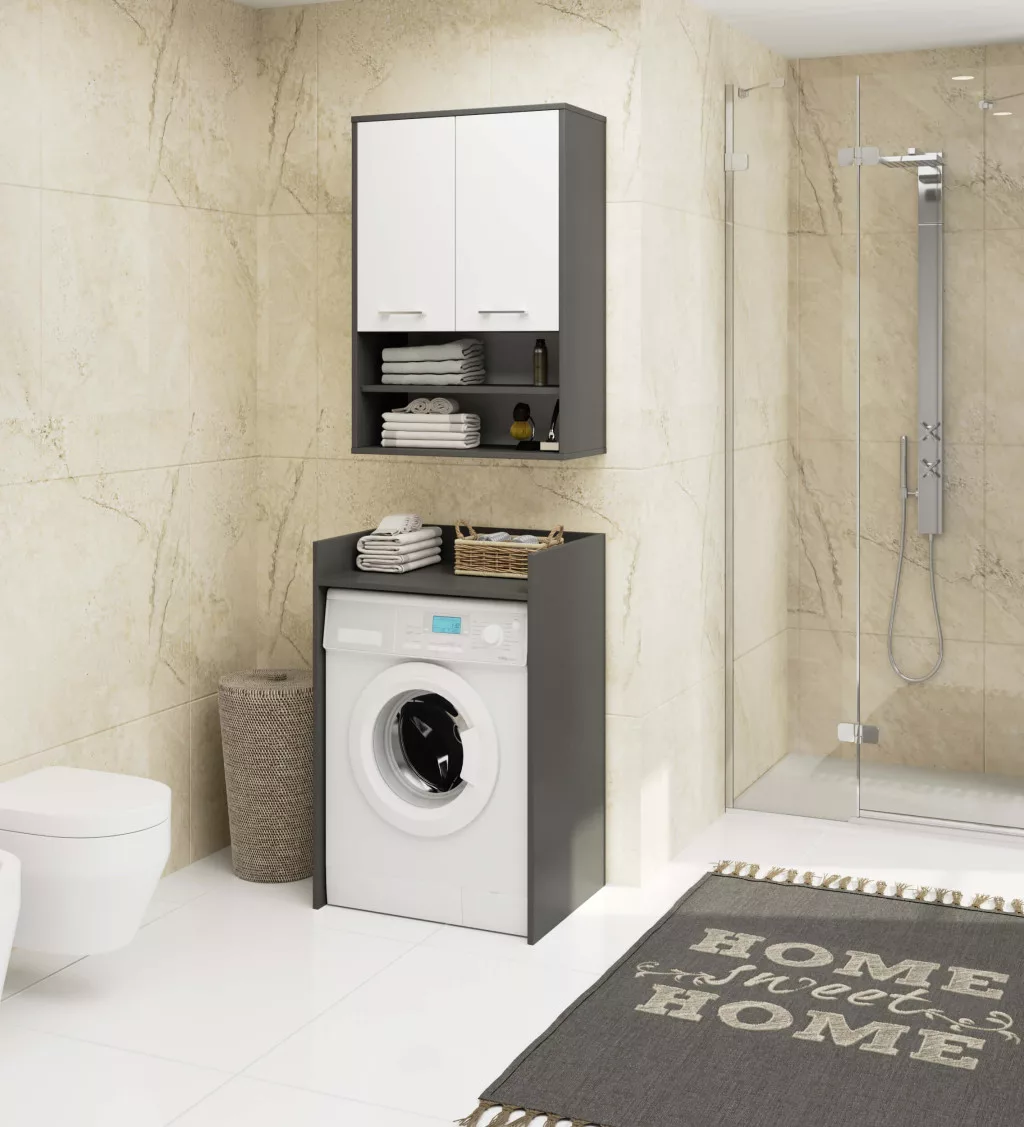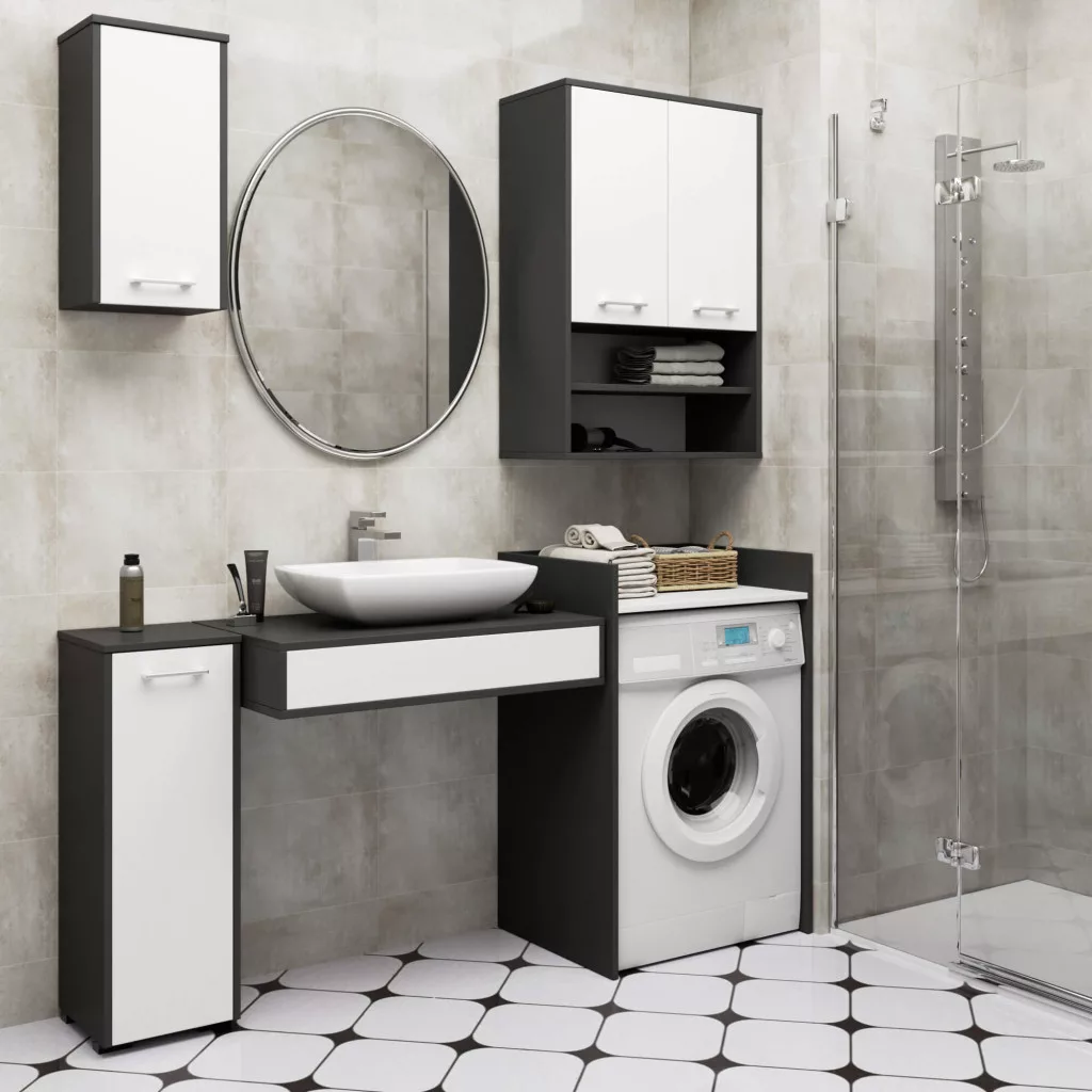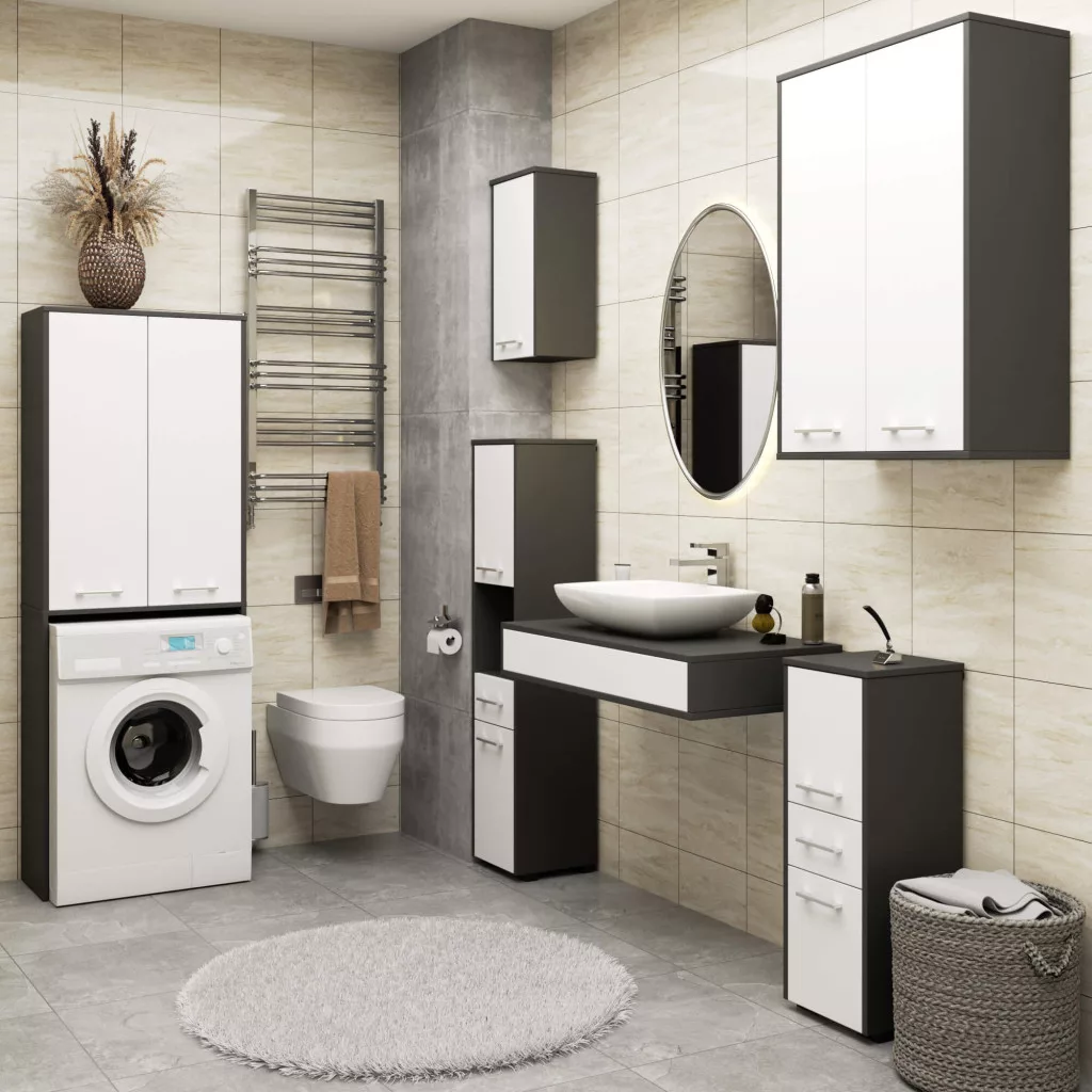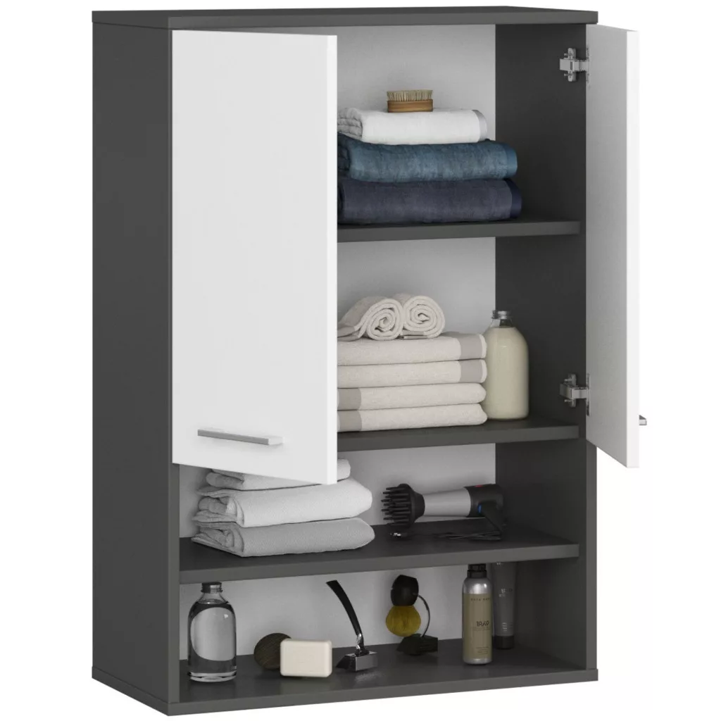 AKORD FIN Fali Fürdőszobaszekrény 64 cm Laminált Lemez Grafit Szürke/Fehér 2 Ajtós 4 Polcos