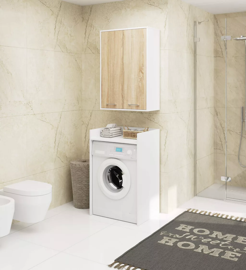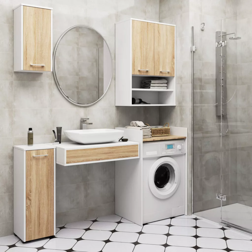AKORD FIN Kétajtós Fürdőszobai Fali Szekrény Fehér/Sonoma Tölgy