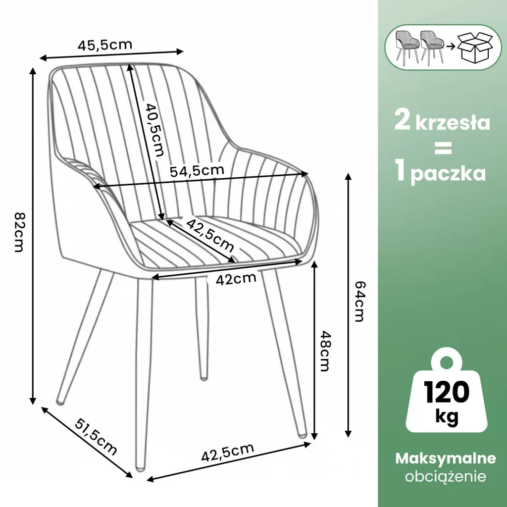Ez a szék nemcsak szép, hanem praktikus is - 120 kg-os teherbírással és ergonomikus kialakítással rendelkezik, amely hosszú ideig tartó kényelmet garantál. A 2 darabos szett tökéletes választás azok számára, akik stílusosan szeretnék berendezni otthonukat. Az egyszerű összeszerelés és a tartós anyagok évekig tartó használatot biztosítanak, miközben a welúr anyag puhasága minden étkezést különleges élménnyé tesz.