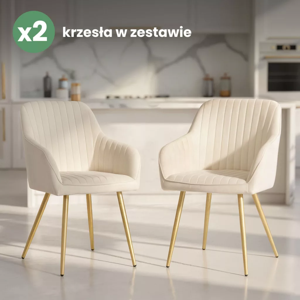 AKORD Florence Kárpitozott Szék Welúr Krém Arany Lábakkal
