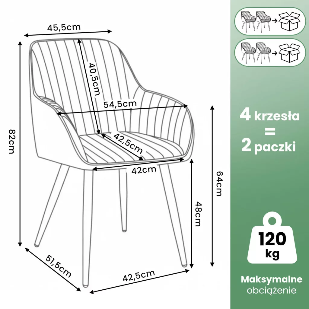 A Florence széket úgy tervezték, hogy tökéletesen illeszkedjen a modern, soft modern és glamour stílusú belső terekbe. Akár étkezőben, akár irodában használja, ez a bútor azonnal feldobja a tér hangulatát. A 4 darabos szett lehetővé teszi, hogy egységes, harmonikus étkezőgarnitúrát alakítson ki. A welúr anyag kellemes tapintású és tartós, míg a stabil acél konstrukció hosszú élettartamot garantál.