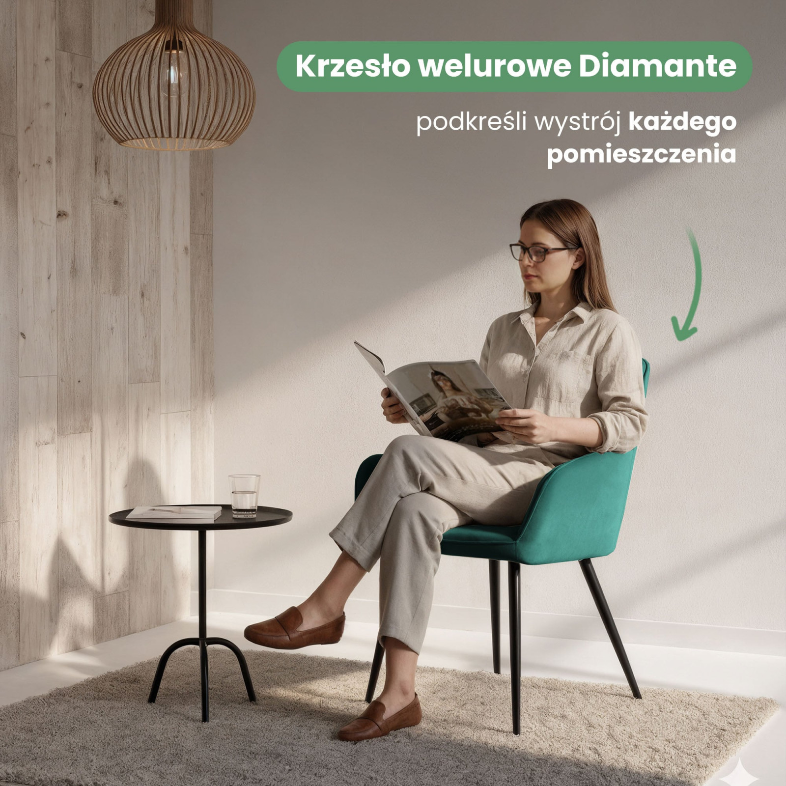 A DIAMANTE kárpitozott szék tökéletes választás azok számára, akik az elegancia és a funkcionalitás harmonikus ötvözetét keresik otthonukba. A kellemes tapintású welur kárpitozás dekoratív steppelt mintával díszített, amely kifinomult megjelenést kölcsönöz a széknek. A nagy sűrűségű habszivacs töltet hosszú távú kényelmet garantál, így akár hosszabb étkezések vagy beszélgetések során is kellemes marad az ülés.