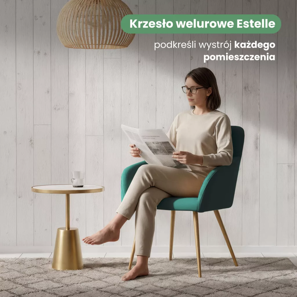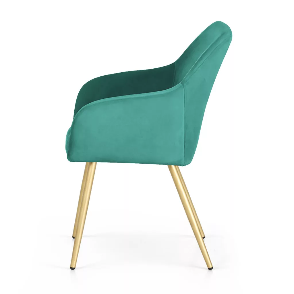 Az ESTELLE welúr kárpitozott szék tökéletes választás azok számára, akik a minimalista eleganciát és a kényelmet keresik. A puha, palackzöld welúr kárpit és az arany színű fém lábak harmonikus kombinációja stílusos kiegészítője bármely modern vagy klasszikus enteriőrnek.