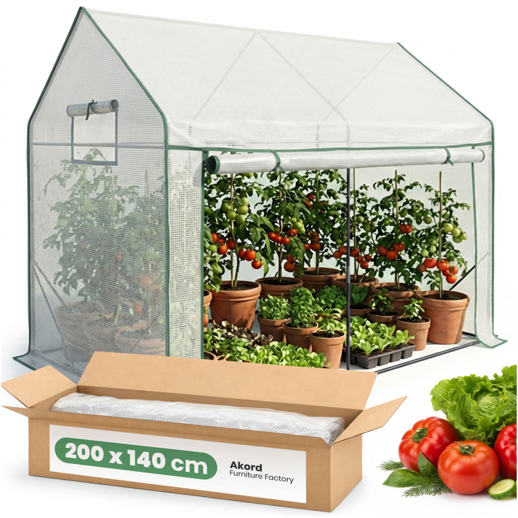 AKORD Furniture Factory Kerti Fóliaüvegház Fehér 200x140x200 cm UV Szűrővel