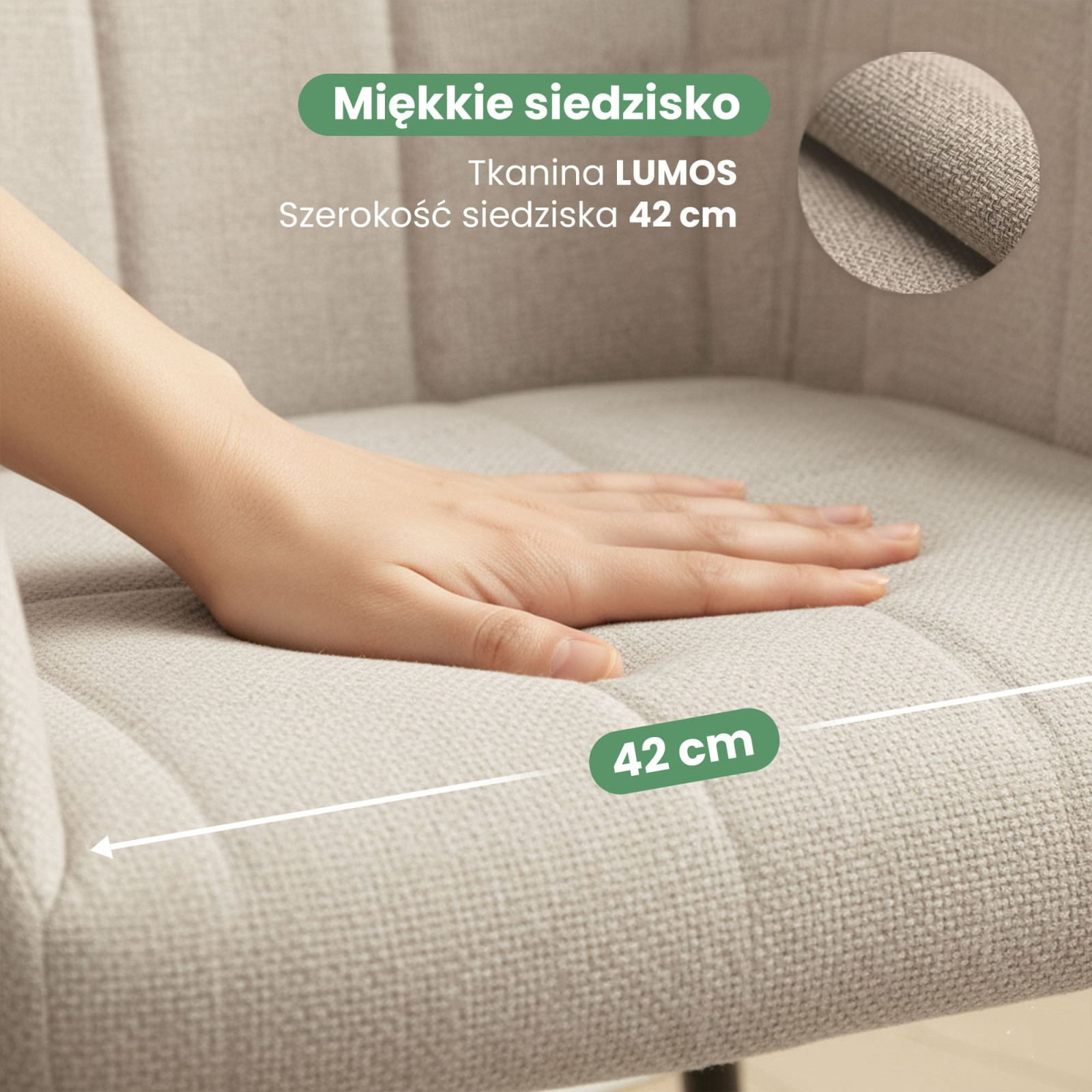 A LUXANO kárpitozott szék lenyűgöző látvány minden étkezőben vagy nappaliban. A puha vonalak és a gondosan kidolgozott négyzetes steppelés presztízst és eleganciát kölcsönöznek a bútoroknak. A Lumos anyag kellemes tapintású, tartós és könnyen tisztítható, így hosszú távon megőrzi szépségét. A fekete acél lábak stabil alapot biztosítanak, miközben modern kontrasztot teremtenek a bézs kárpittal.
