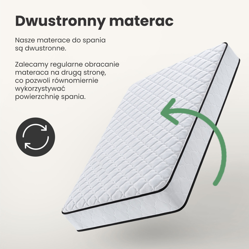 Az AKORD Furniture Factory 120x200 cm-es rugós matraca tökéletes megoldást kínál azok számára, akik közepes keménységű, ergonomikus alvófelületet keresnek. A 7 zónás rugórendszer pontosan igazodik a test kontúrjaihoz, optimális támasztást biztosítva a gerinc számára az alvás során. A 24 cm magas matrac kiváló rugalmasságot és tartósságot egyesít, miközben hatékonyan szigetel az alától és biztosítja a megfelelő levegőcirkulációt.