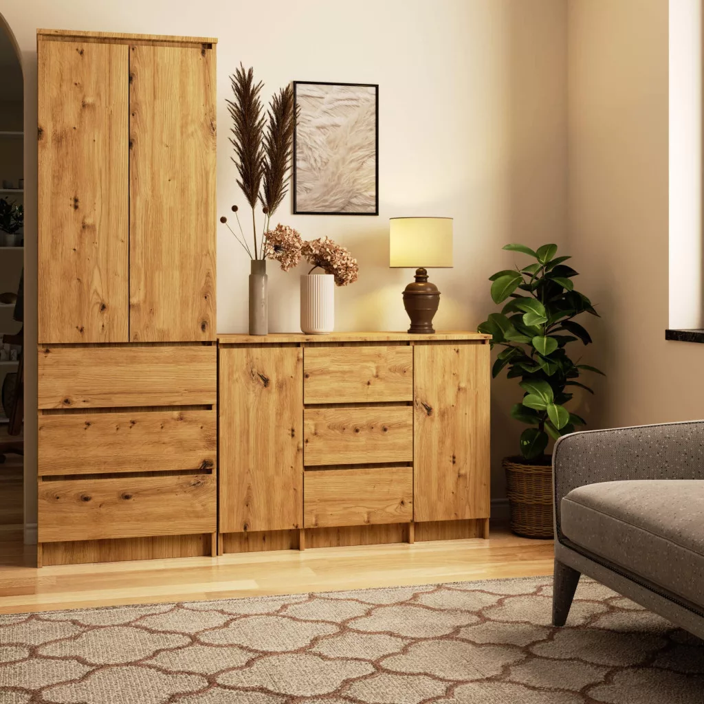 AKORD K100 Artisan Tölgy Komód 2 Ajtós 3 Fiókos