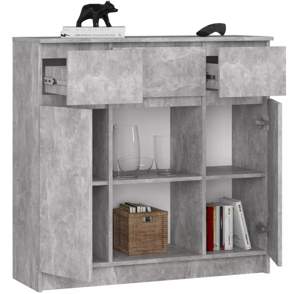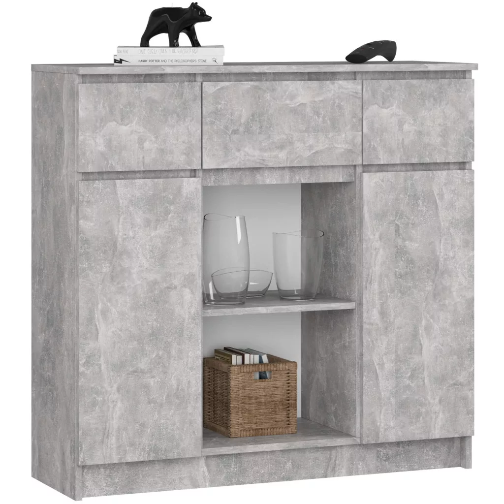 AKORD K100 Beton Komód 3 Fiókos 2 Ajtós Tárolószekrény