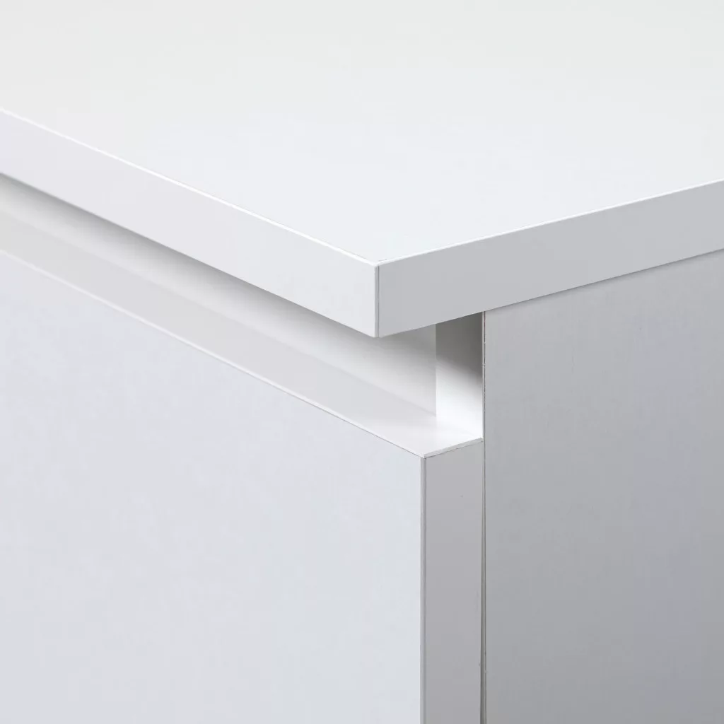 A bútor minden éle strapabíró ABS élzárással van ellátva, ami növeli a tartósságot és elegáns megjelenést kölcsönöz. A matt fehér felület időtlen dizájnt biztosít, amely bármilyen lakberendezési stílushoz illeszkedik.