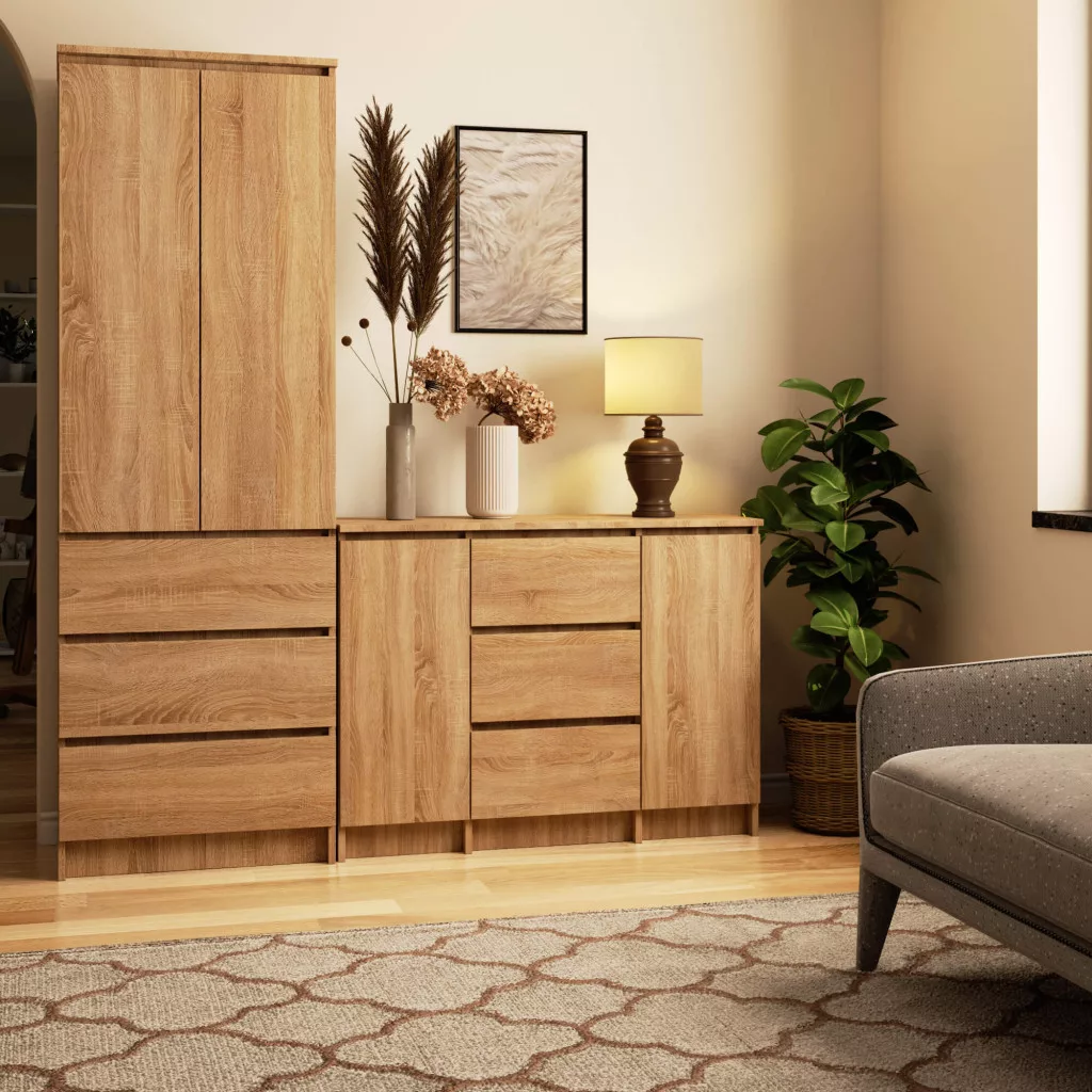 AKORD K100 Sonoma Tölgy Komód 3 Fiókkal és 2 Ajtóval