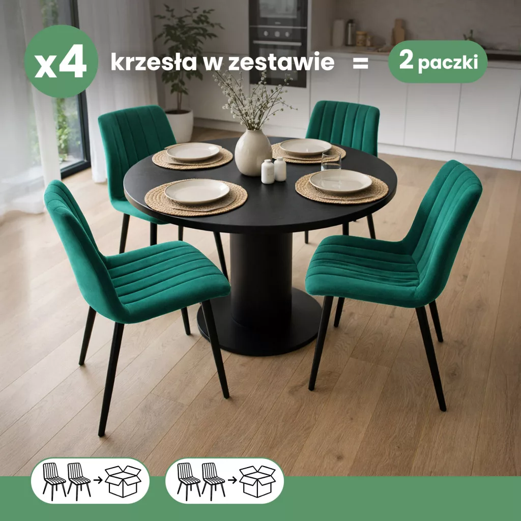 AKORD LIVO Étkezőszék Welur Butelkowa Zöld Fekete Lábakkal 4 db