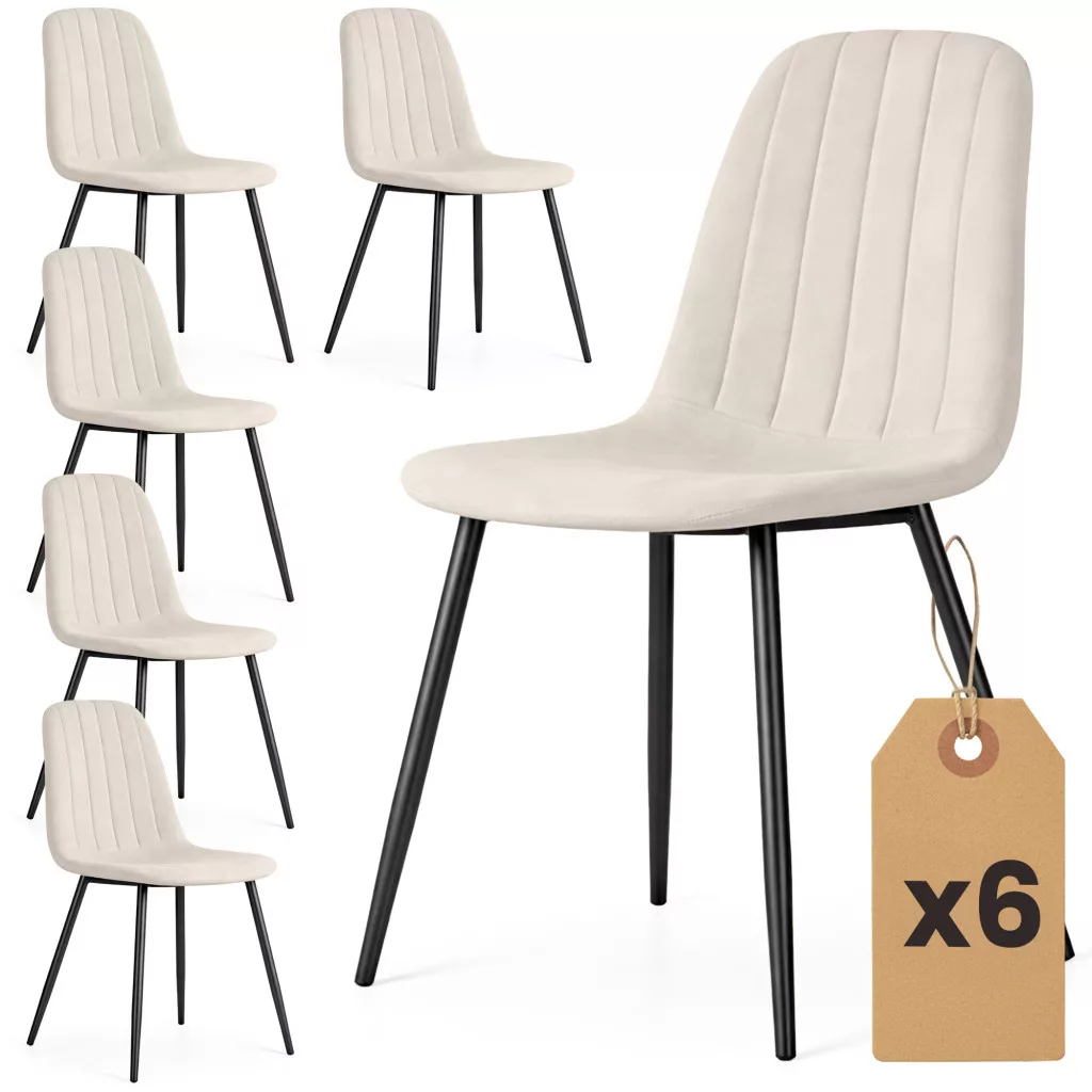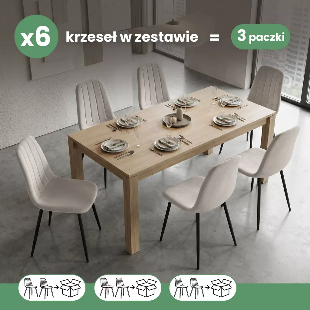 AKORD LUMO Tapicerowane Welurowe Székek Bézs Fekete Lábakkal 6 db