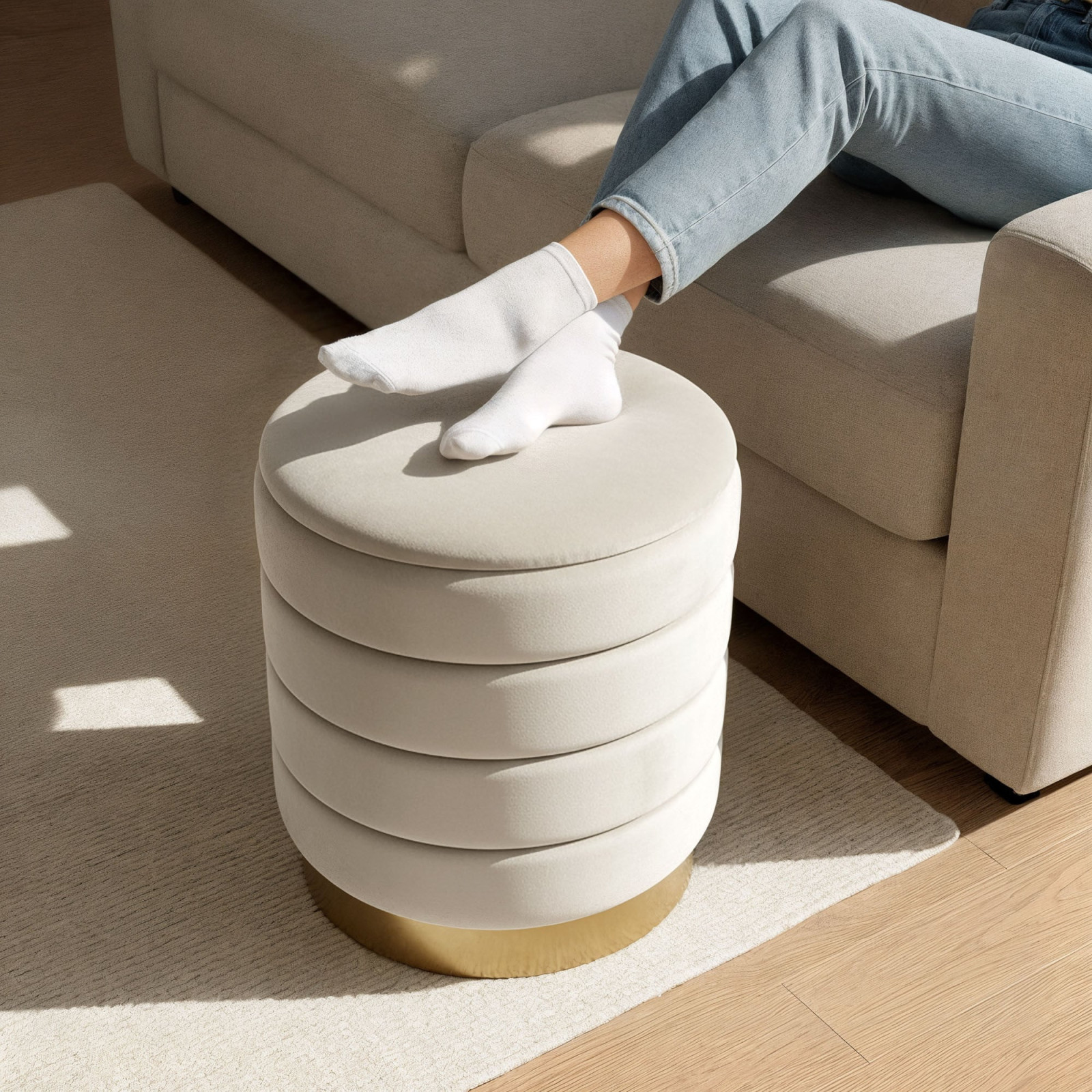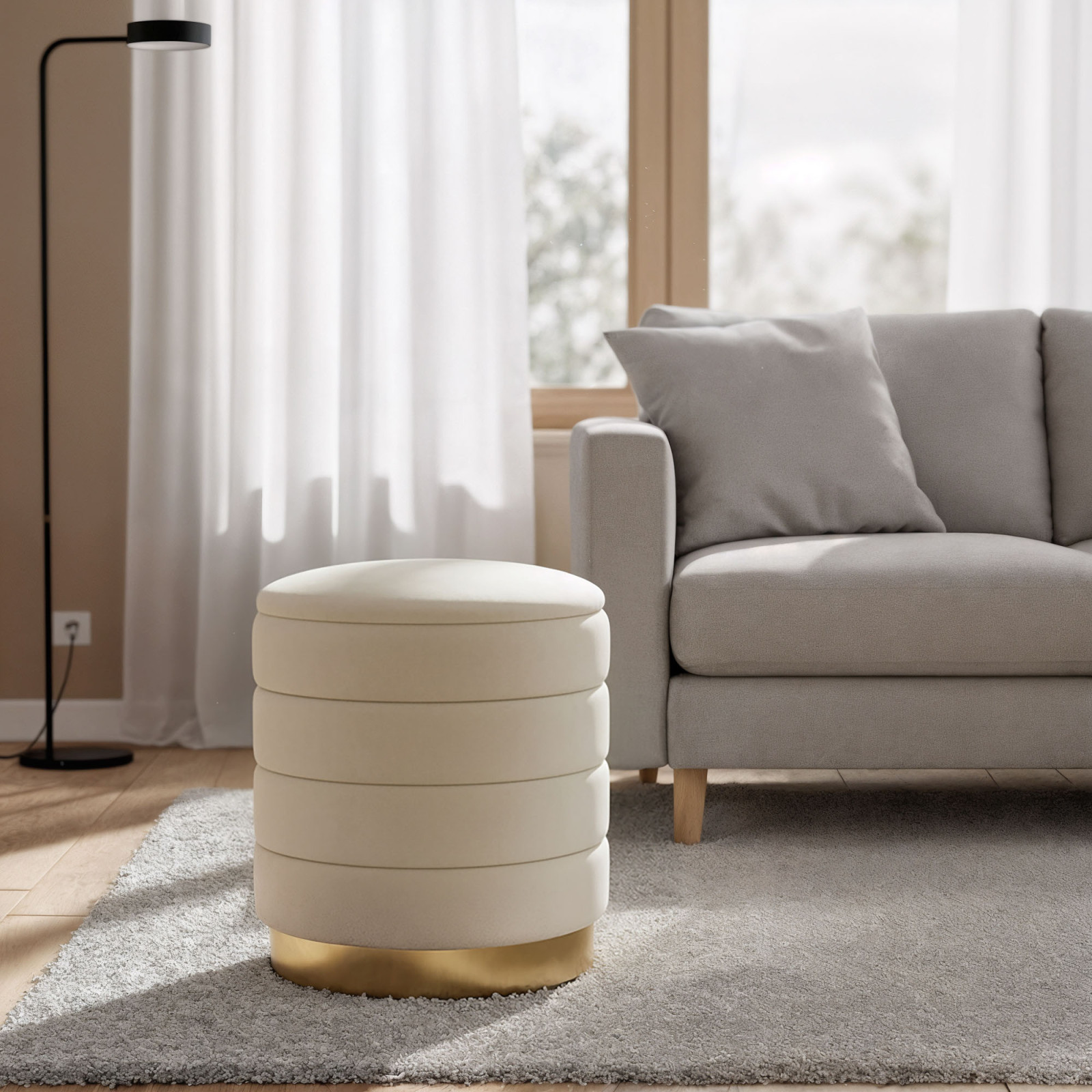 AKORD LUNA pufa tárolórekeszes welur krém modern glamour