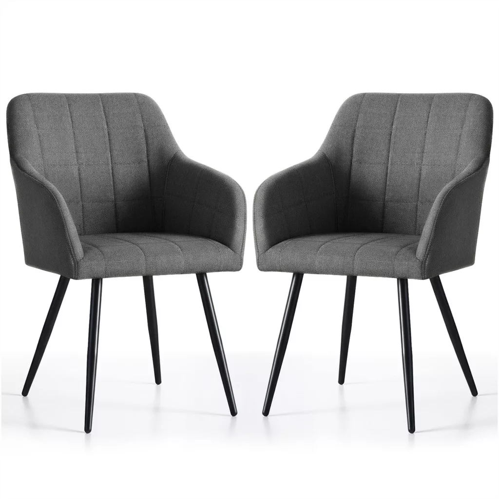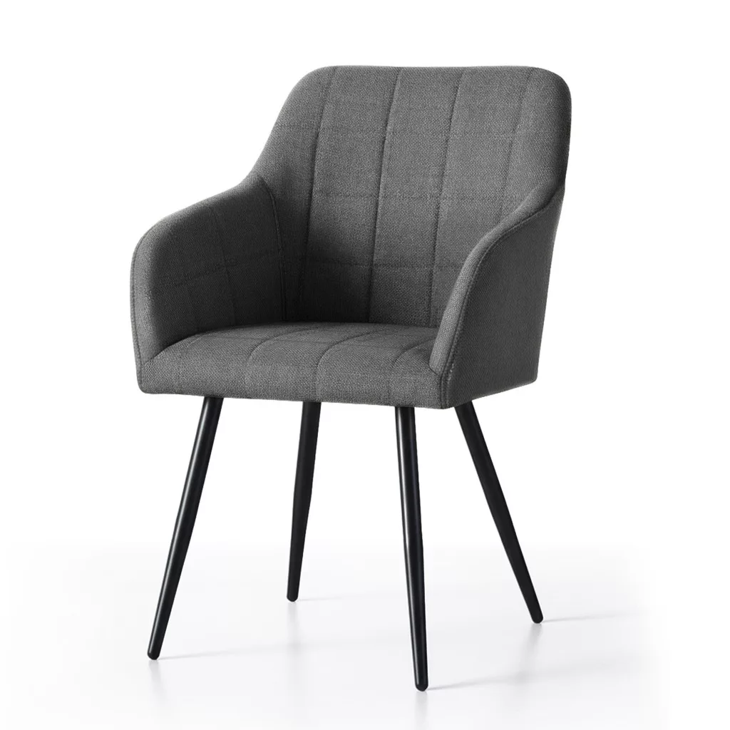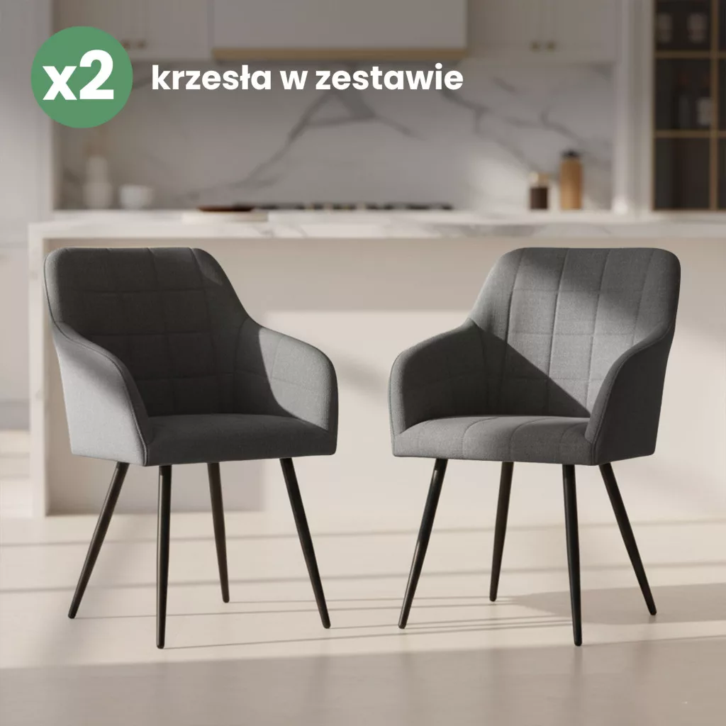 A fekete acél lábak stabil alapot nyújtanak és modern kontrasztot képeznek a szürke kárpittal. A szék 120 kg-os teherbírása és gondosan megtervezett méretei (82 cm magasság, 54 cm szélesség) garantálják a tartósságot és a kényelmet. Univerzális formája révén tökéletesen illeszkedik különböző berendezési stílusokhoz - legyen szó étkezőről, nappaliról vagy irodai térről. A 2 darabos szett praktikus megoldást kínál azoknak, akik egységes megjelenésű bútoregyüttest szeretnének.