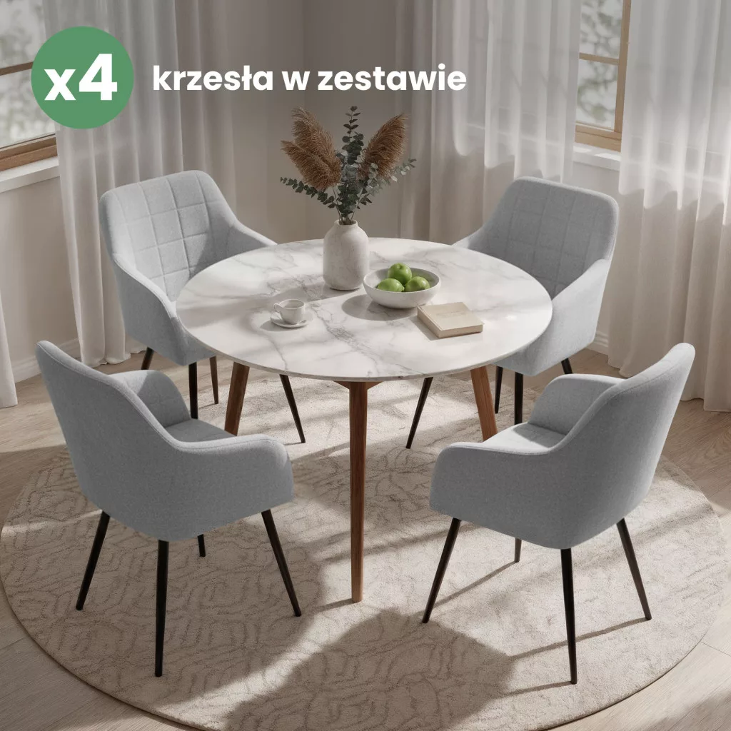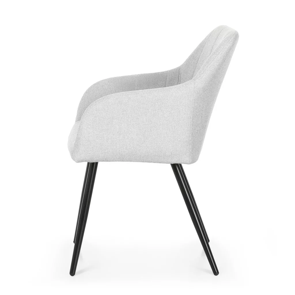 A stabil fekete fém lábak modern kontrasztot teremtenek a világosszürke kárpittal, miközben 120 kg-os terhelhetőséggel garantálják a biztonságos használatot. A szék 82 cm magassága, 54 cm szélessége és 58 cm mélysége ideális arányokat kínál, a 47 cm-es ülésmagasság pedig ergonomikus ülőpozíciót tesz lehetővé. Ez a 4 darabos szett tökéletes választás modern classic, glamour vagy quiet luxury stílusú otthonokba, ahol a funkcionalitás és az esztétikum egyaránt fontos szempont.