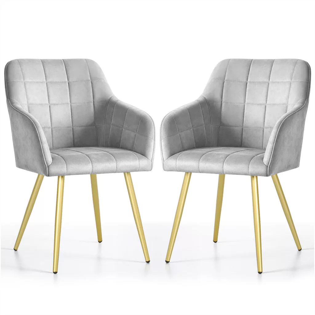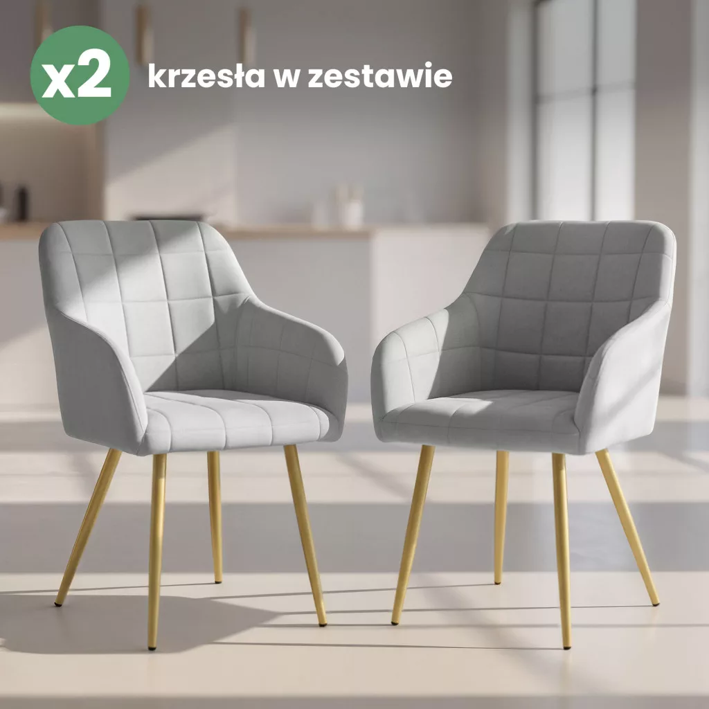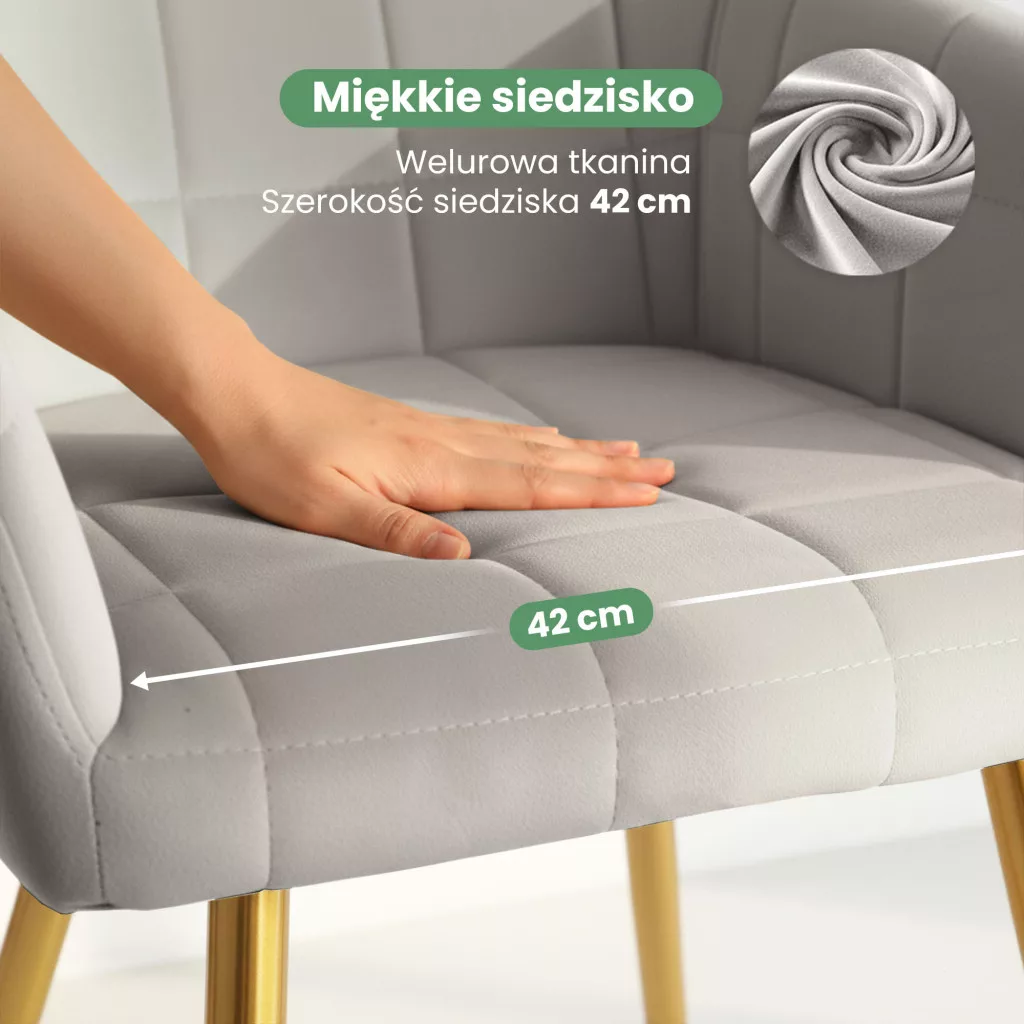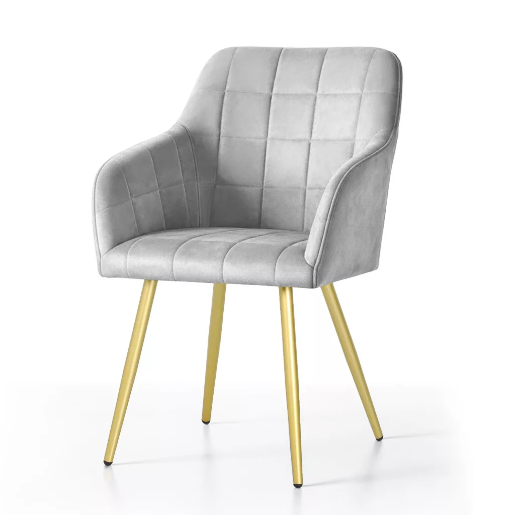 AKORD LUXANO kárpitozott szék welúr szürke arany lábakkal négyzetes steppelt mintával