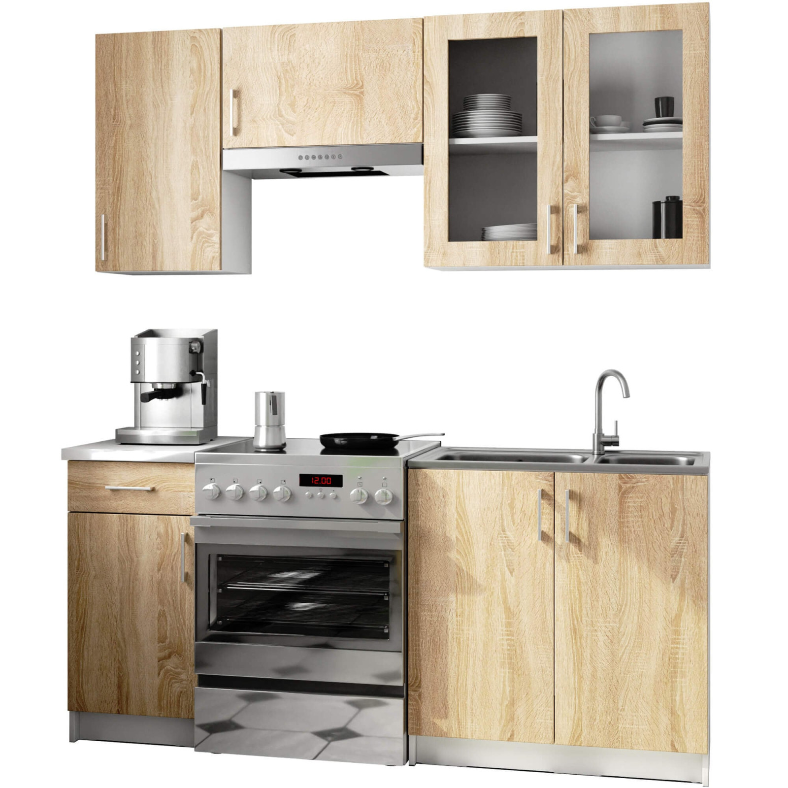 AKORD Lima 180 Konyhabútor Szett Sonoma Tölgy/Fehér Üvegvitrines
