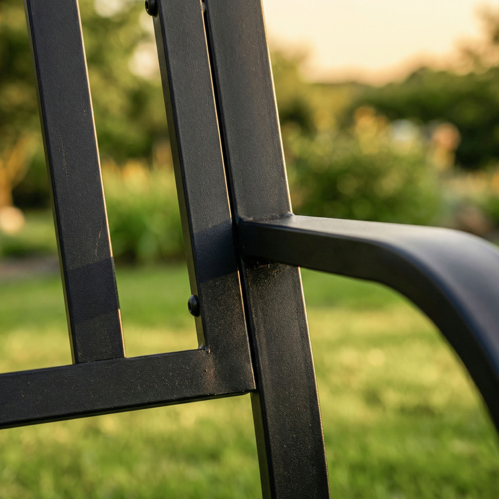 • Minimalista fekete dizájn, amely időtlen eleganciát kölcsönöz bármely kültéri térnek