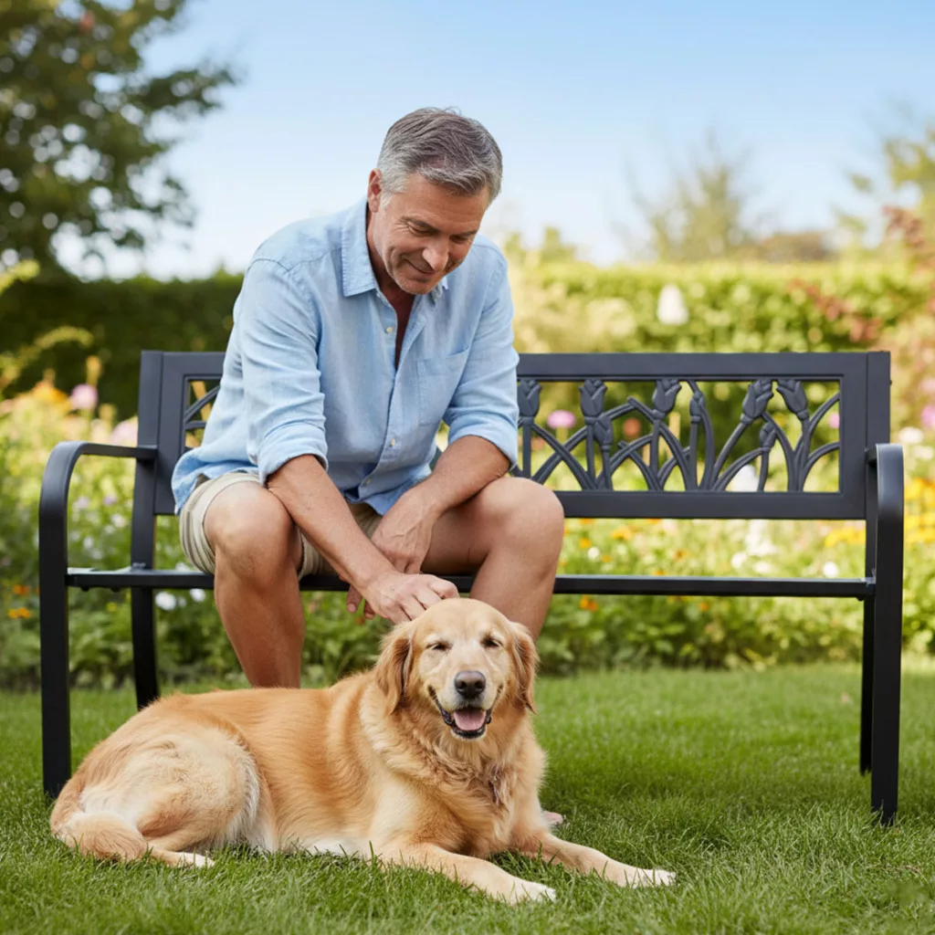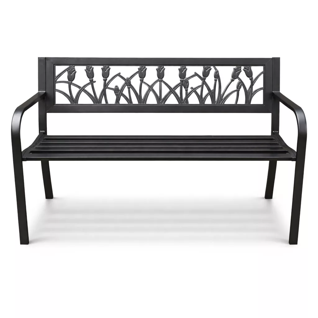 Stílusos és tartós kerti pad tulipán motívummal