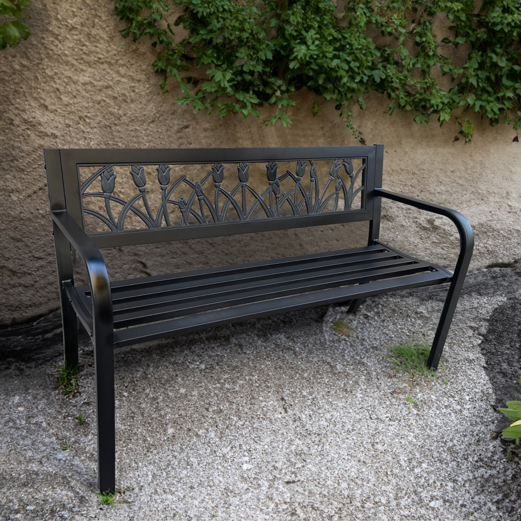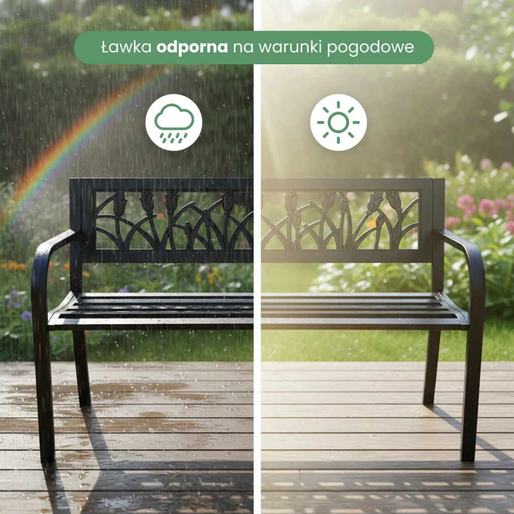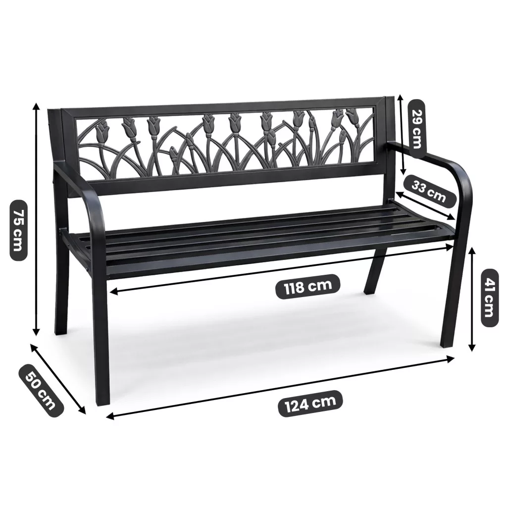 A Lissa kerti pad ötvözi az elegáns megjelenést a praktikus funkcionalitással. A háttámlán található dekoratív tulipán motívum egyedi karaktert kölcsönöz a padnak, míg a stabil fém szerkezet és az 5 léces ülőfelület maximális kényelmet biztosít. A pad időjárásálló anyagokból készült, így egész évben kint maradhat a szabadban.