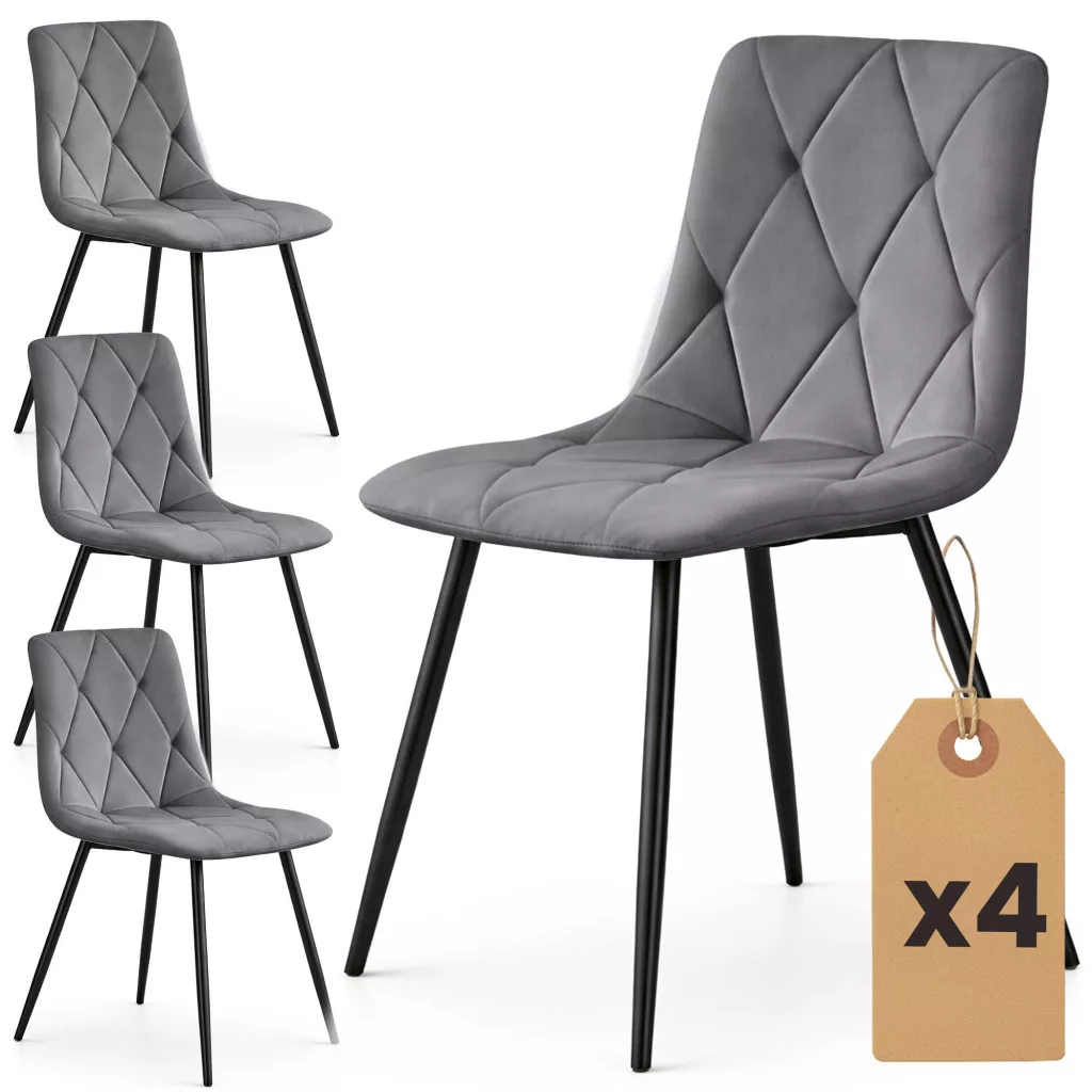 AKORD MILO Kárpitozott Étkezőszék Welur Sötét Grafitszürke Fekete Lábakkal Rombusz Steppelés 4 db