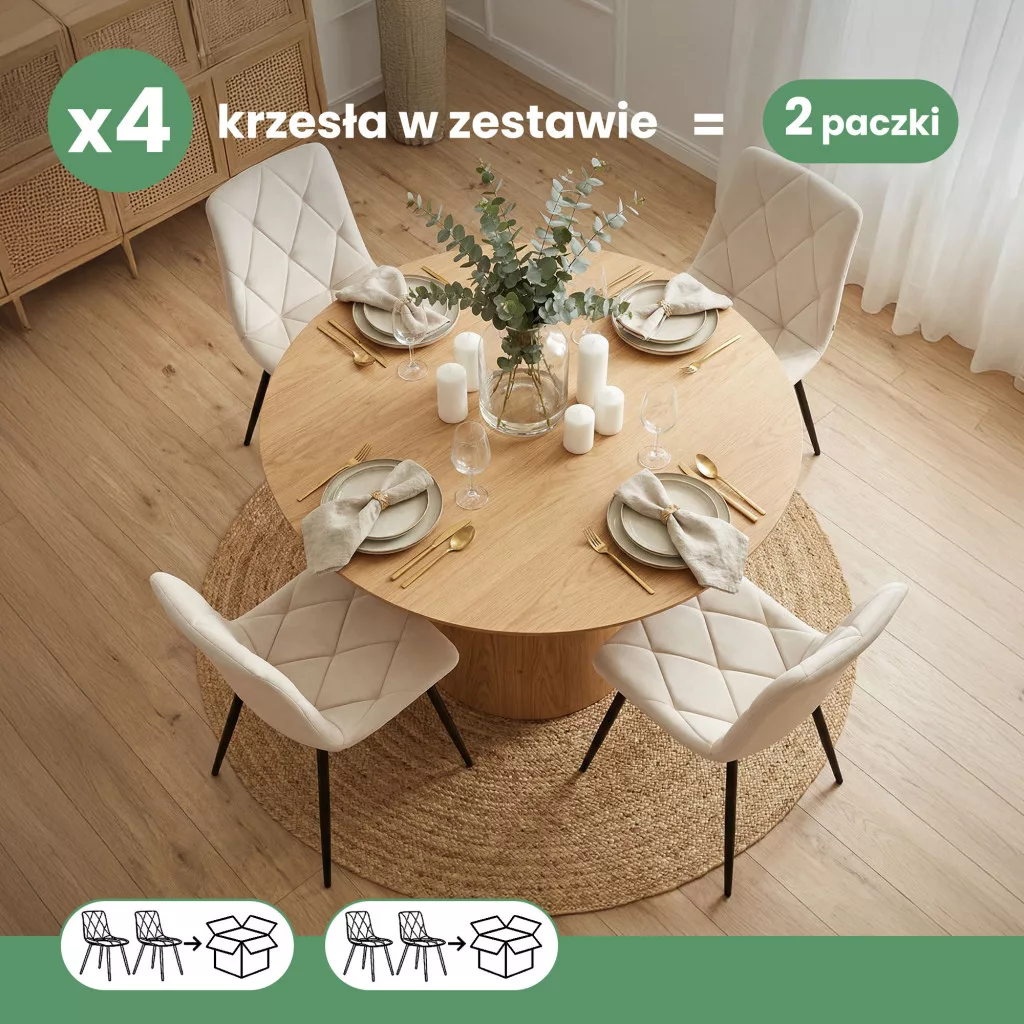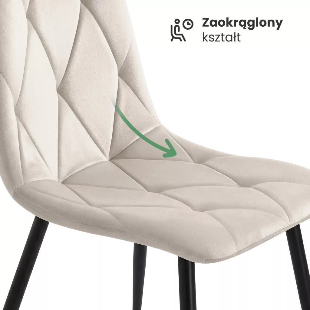 AKORD MILO kárpitozott szék welur bézs rombusz steppelt mintával fekete lábakkal 4 db-os szett