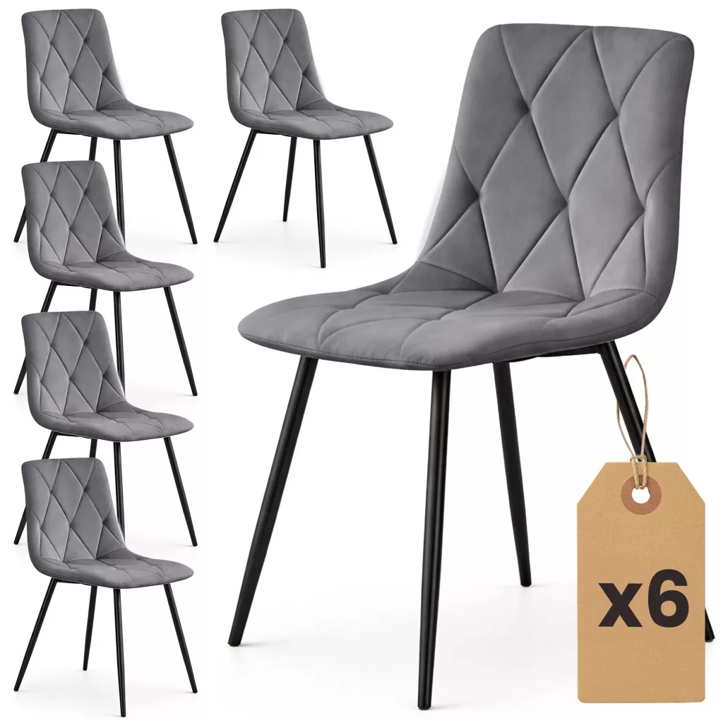 AKORD MILO kárpitozott szék welur sötét grafit rombusz steppelt fekete lábakkal 6 db