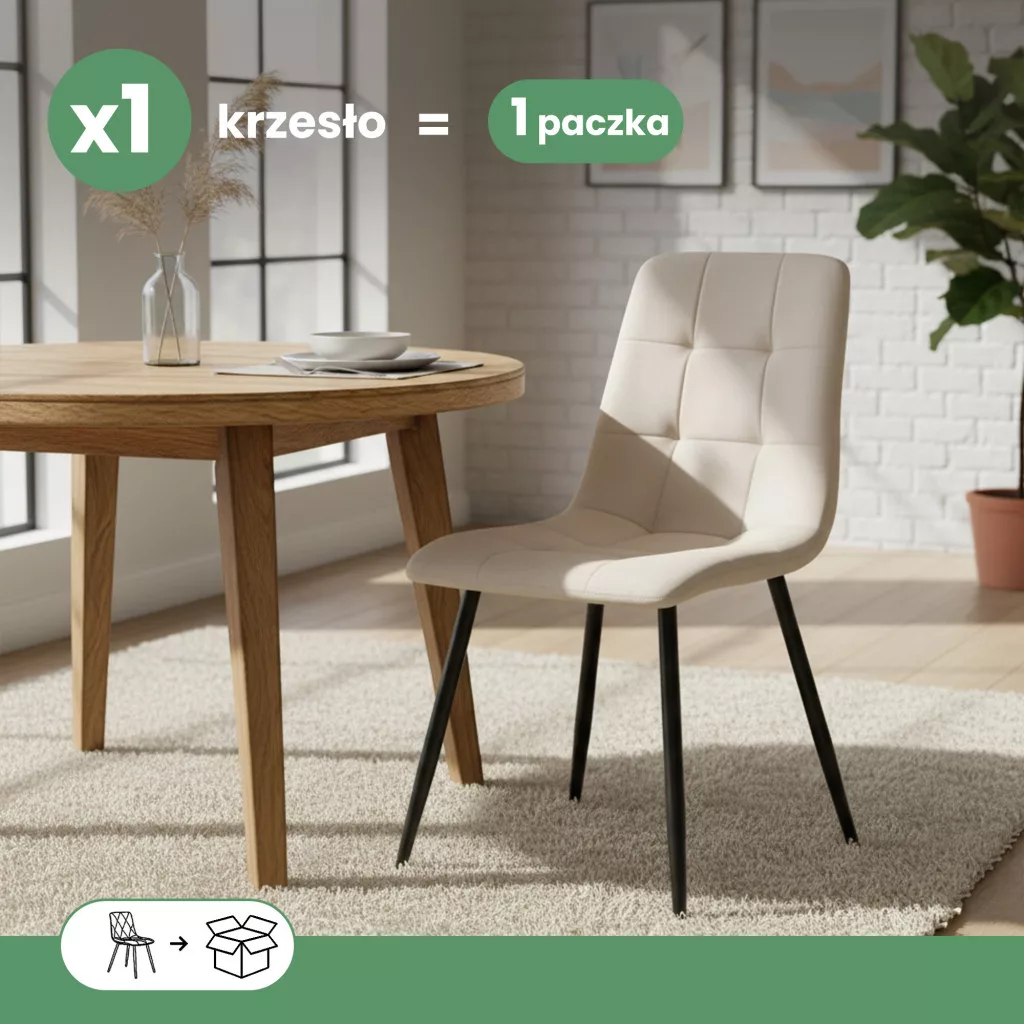 AKORD NERO Étkezőszék Bársony Bézs Fekete Lábakkal Steppelt