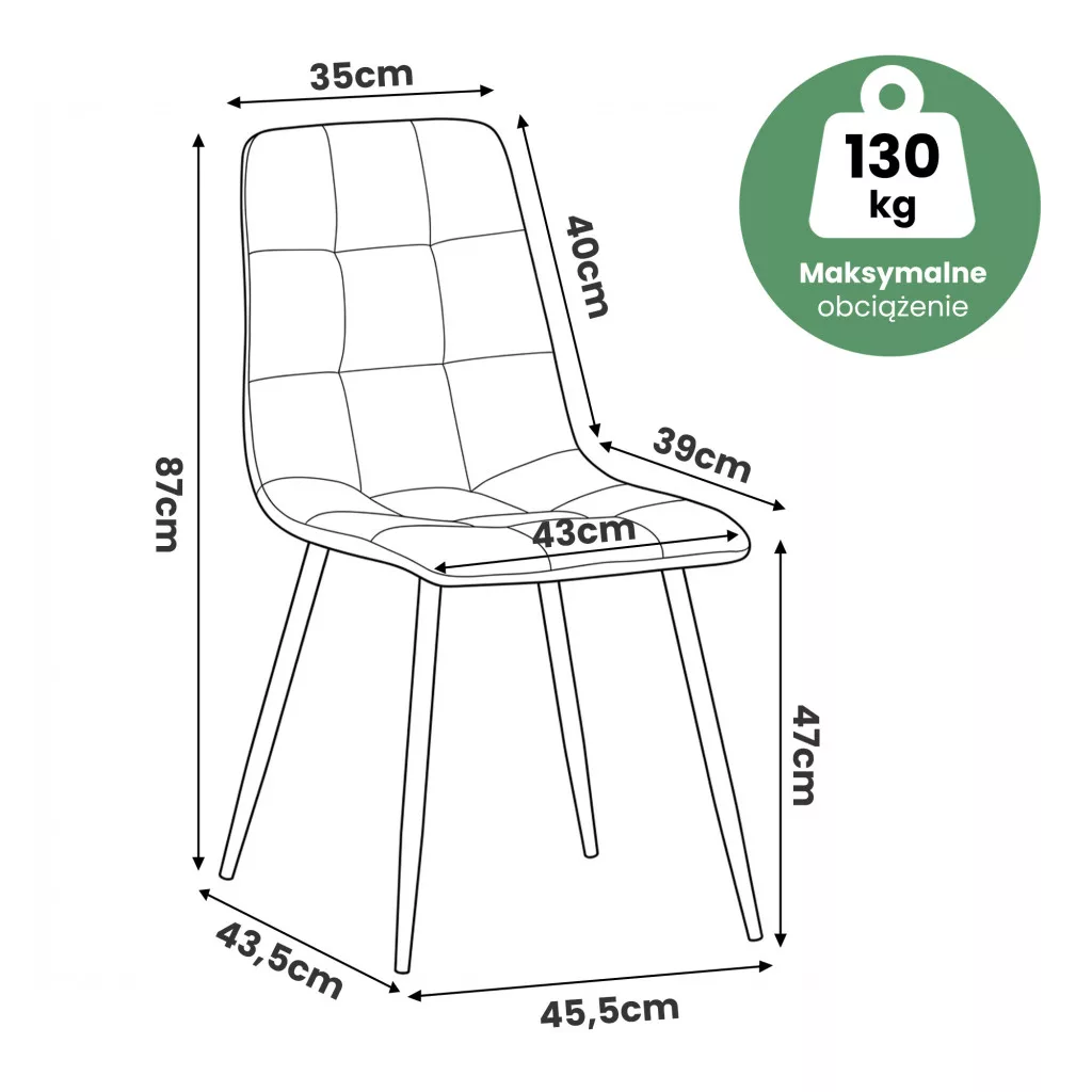 Ez a sokoldalú szék kiválóan illeszkedik az ipari, modern, skandináv és minimalista berendezési stílusokhoz egyaránt. A 130 kg-os teherbírás és a gondosan megválasztott anyagok hosszú élettartamot garantálnak. A welúr kárpit puha, meleg felülete otthonos hangulatot teremt, míg az egyszerű, letisztult forma biztosítja, hogy a szék bármilyen környezetben harmonikusan érvényesüljön. Tökéletes választás étkezőbe, nappaliba vagy home office-ba.