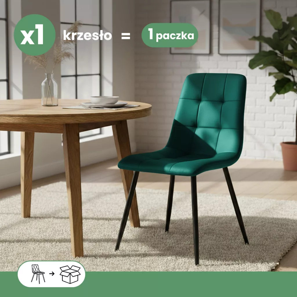 A NERO étkezőszék tökéletes választás azok számára, akik az eleganciát és a funkcionalitást keresik. A gyönyörű üvegzöld welur kárpit négyzetes pikírozással nemcsak vizuálisan lenyűgöző, hanem kellemes tapintású is. A szék karcsú, fekete fém lábai modern, loft stílusú megjelenést biztosítanak, amely harmonikusan illeszkedik az indusztriális, skandináv és minimalista berendezésekhez egyaránt.