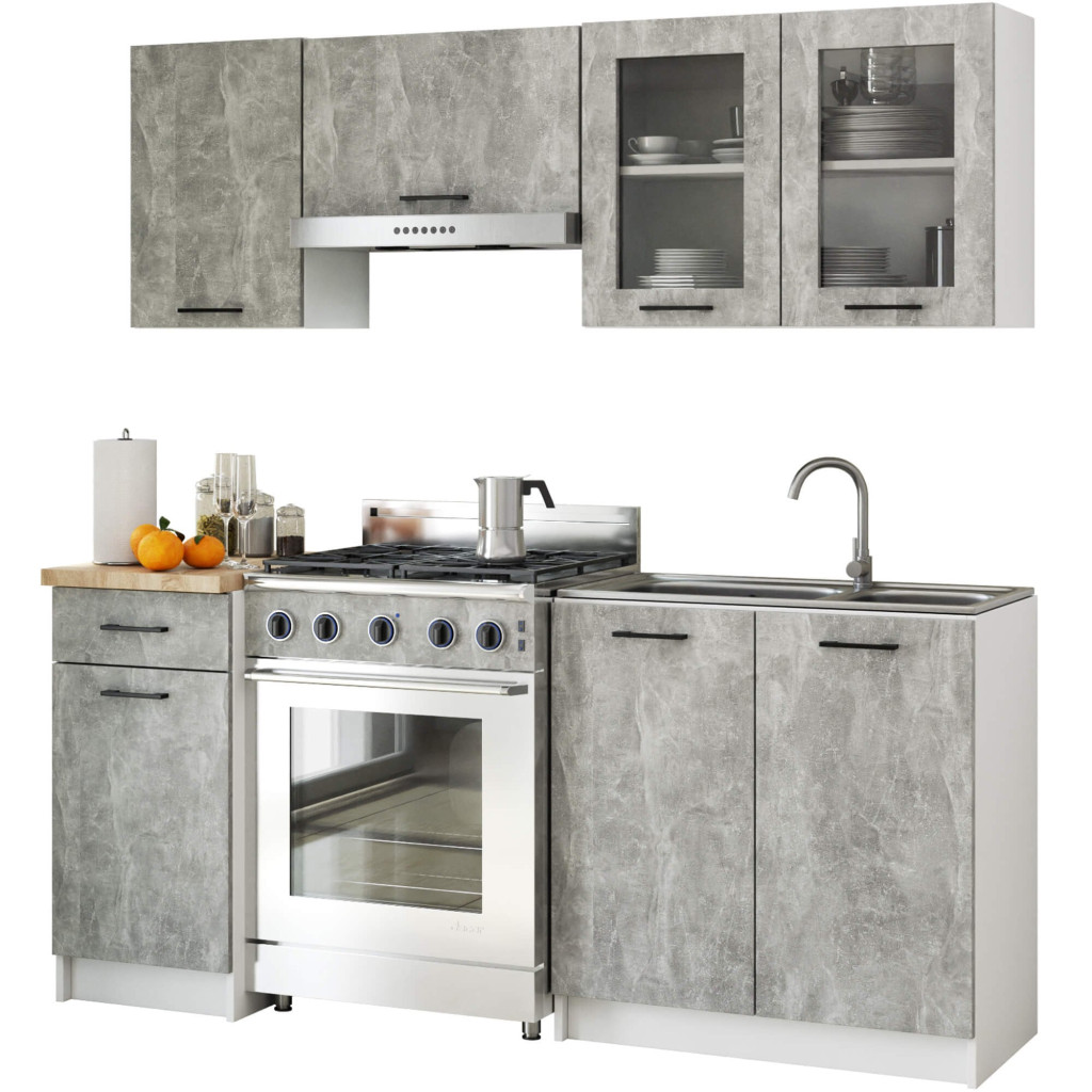 AKORD Oliwia 1.8m Konyhabútor Szett Vitrinnel Beton Szürke