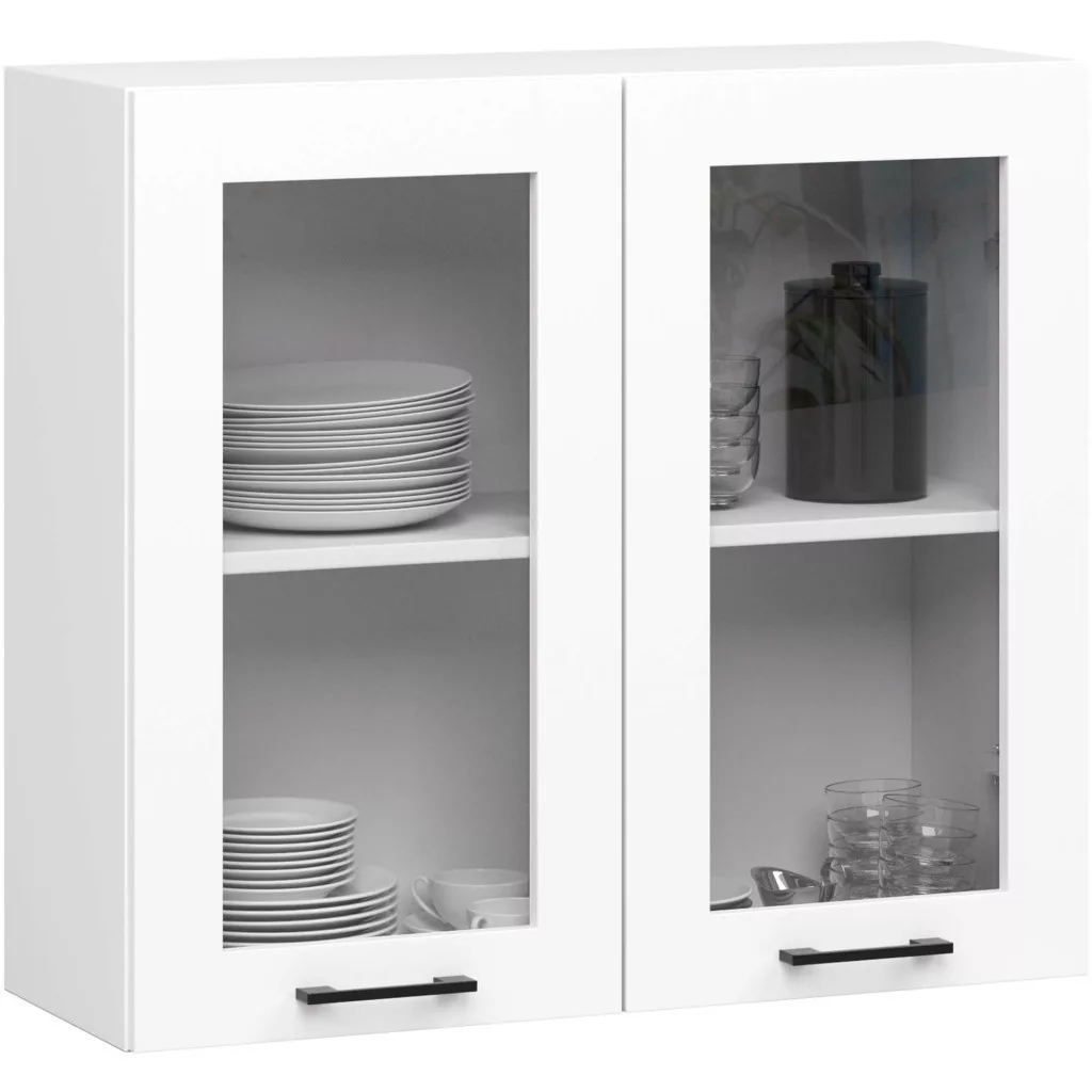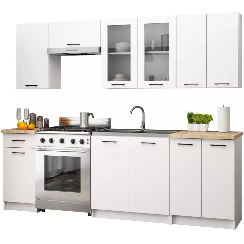 AKORD Oliwia 2.4m Fehér Konyhabútor Szett Üveges Vitrinnel