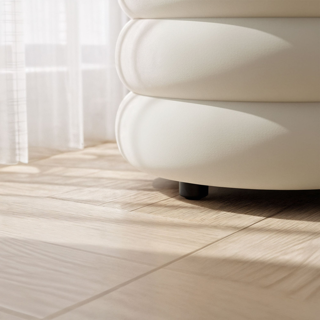 A PUFFO tárolós pufa elegáns welur kárpittal és praktikus belső tárolóval rendelkezik. Organikus formája és krémszínű kivitele tökéletesen illeszkedik modern és soft glam stílusú otthonokba.
