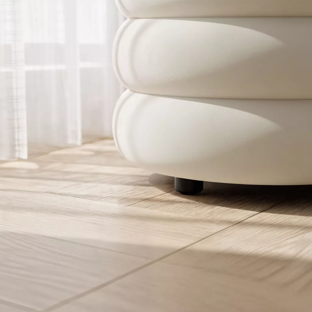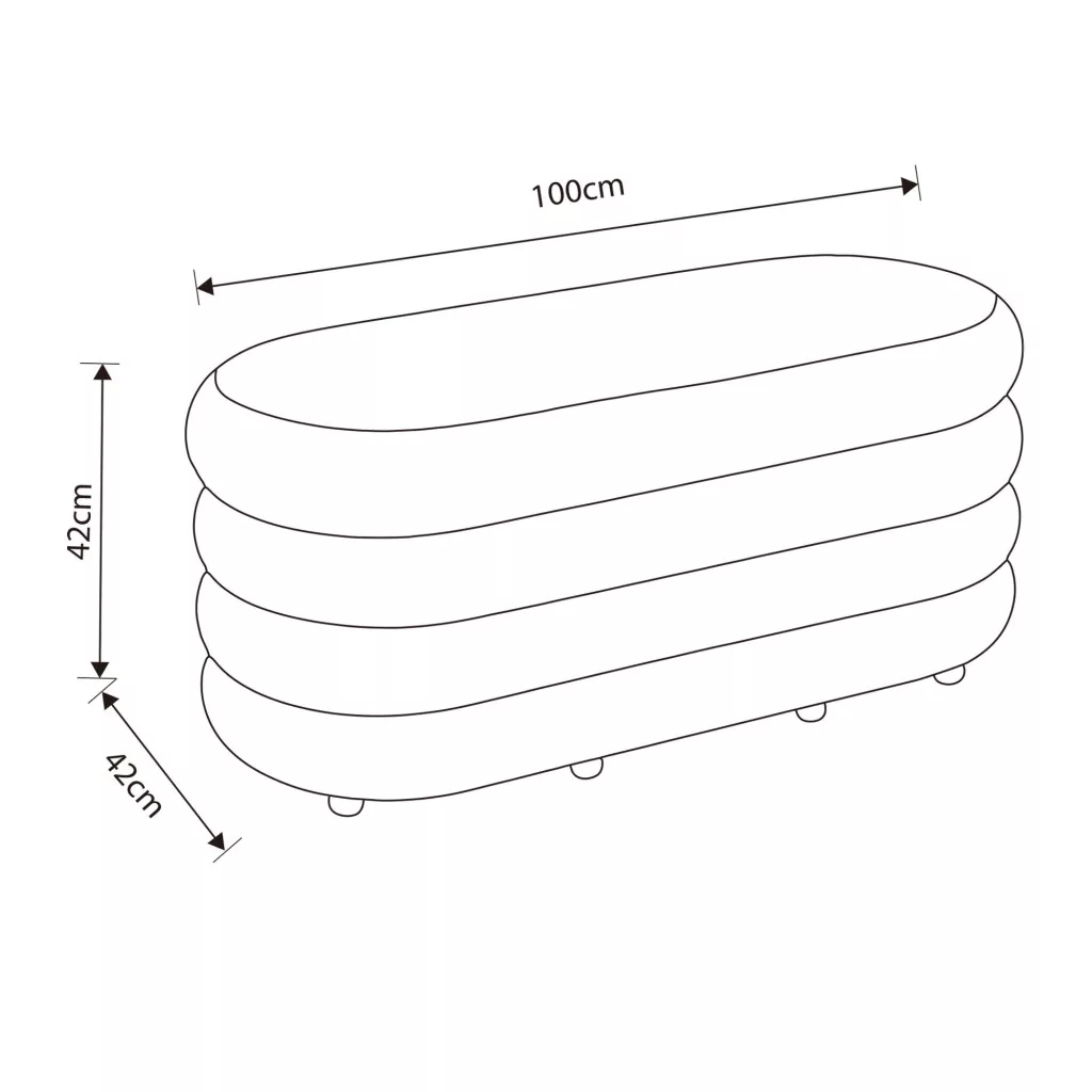 A PUFFO tapicerozott puff lenyűgöző organikus formájával és prémium welúr kárpitjával azonnal feldobja bármely helyiség hangulatát. A krémszínű, puha tapéta nemcsak kellemes tapintású, hanem luxus megjelenést is kölcsönöz a búторnak. Az egyedi, hullámos design modern soft glam és organic modern stílusú otthonokba illeszkedik tökéletesen. A 100 cm hosszú puff ideális ülőhelyként szolgál előszobában, hálószobában vagy nappaliban.